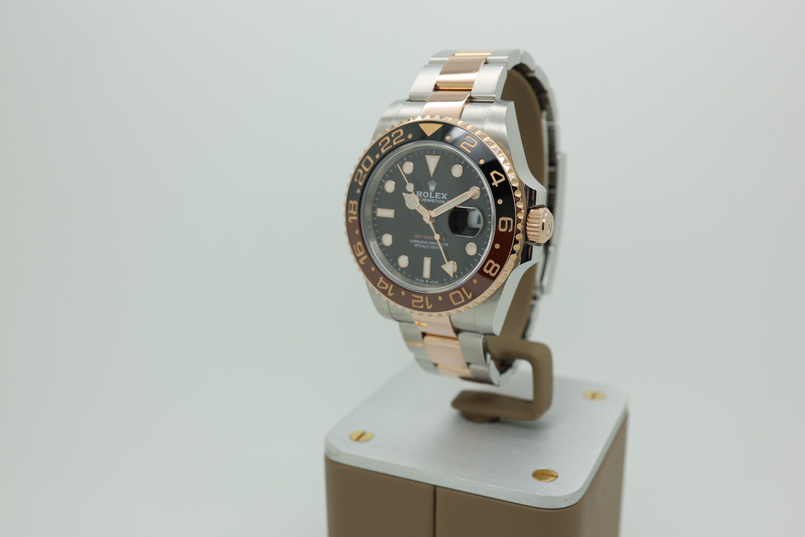 A modern icon with vintage-inspired tones, the GMT-Master II “Root Beer” remains one of the most desirable two-tone Rolex references on the market today.