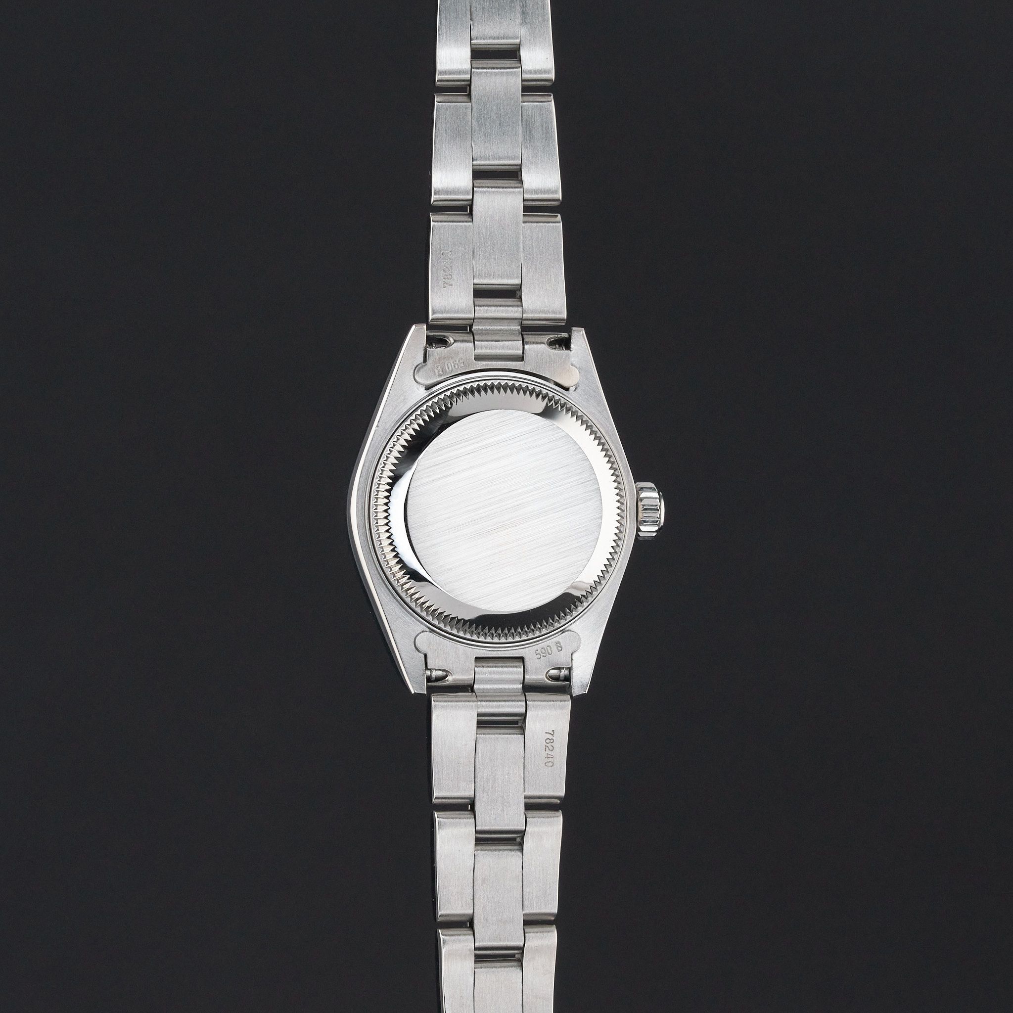 This Rolex Oyster Perpetual Lady Date 79160 features a Silver tapestry dial and is crafted from stainless steel, with a production year of 2000.Case No: P21XXXX