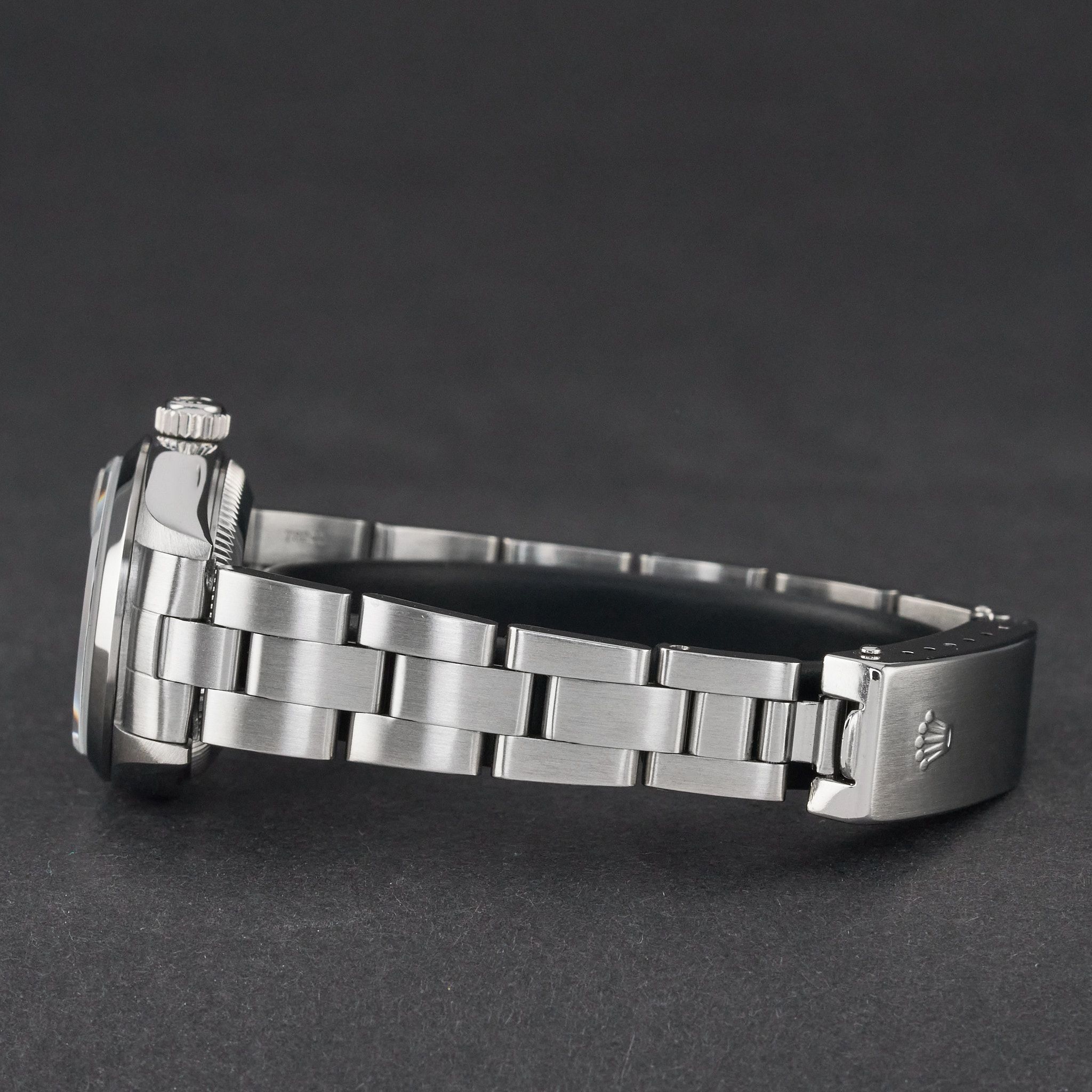 Diese Rolex Oyster Perpetual Lady Date 79160 verfügt über ein silbernes Tapisserie-Zifferblatt und ist aus Edelstahl gefertigt, mit einem Produktionsjahr von 2000.