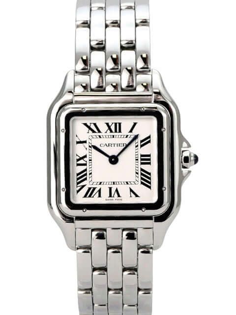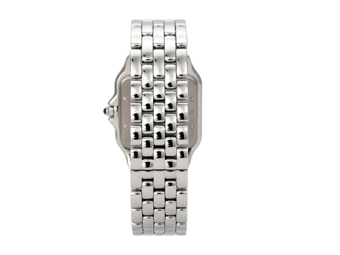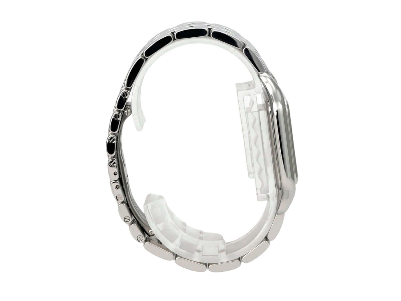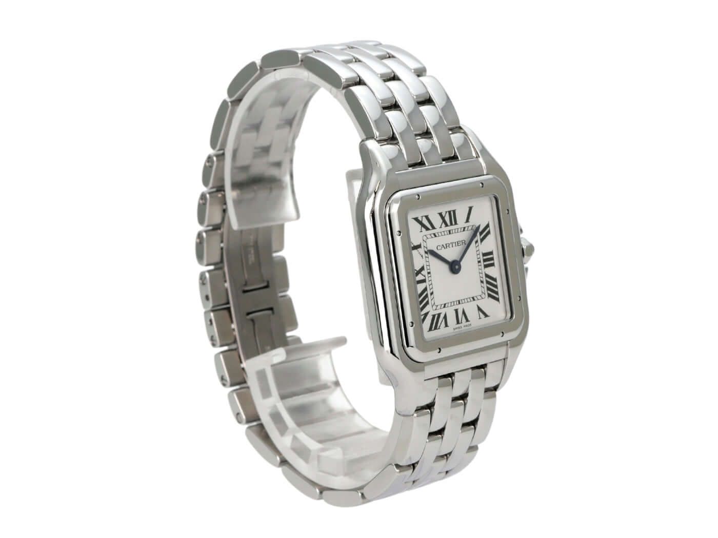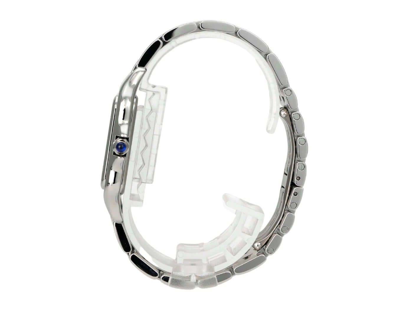 Cartier Panthère de Cartier large model Ref. WSPN0016Polished stainless steel case, case diameter 31 × 42 mm, polished stainless steel bezel, stainless steel bracelet with folding clasp, silver-colored dial with blued steel hands, Roman numerals, quartz movement, sapphire crystal, screwed stainless steel case back, water-resistant up to 3 bar.