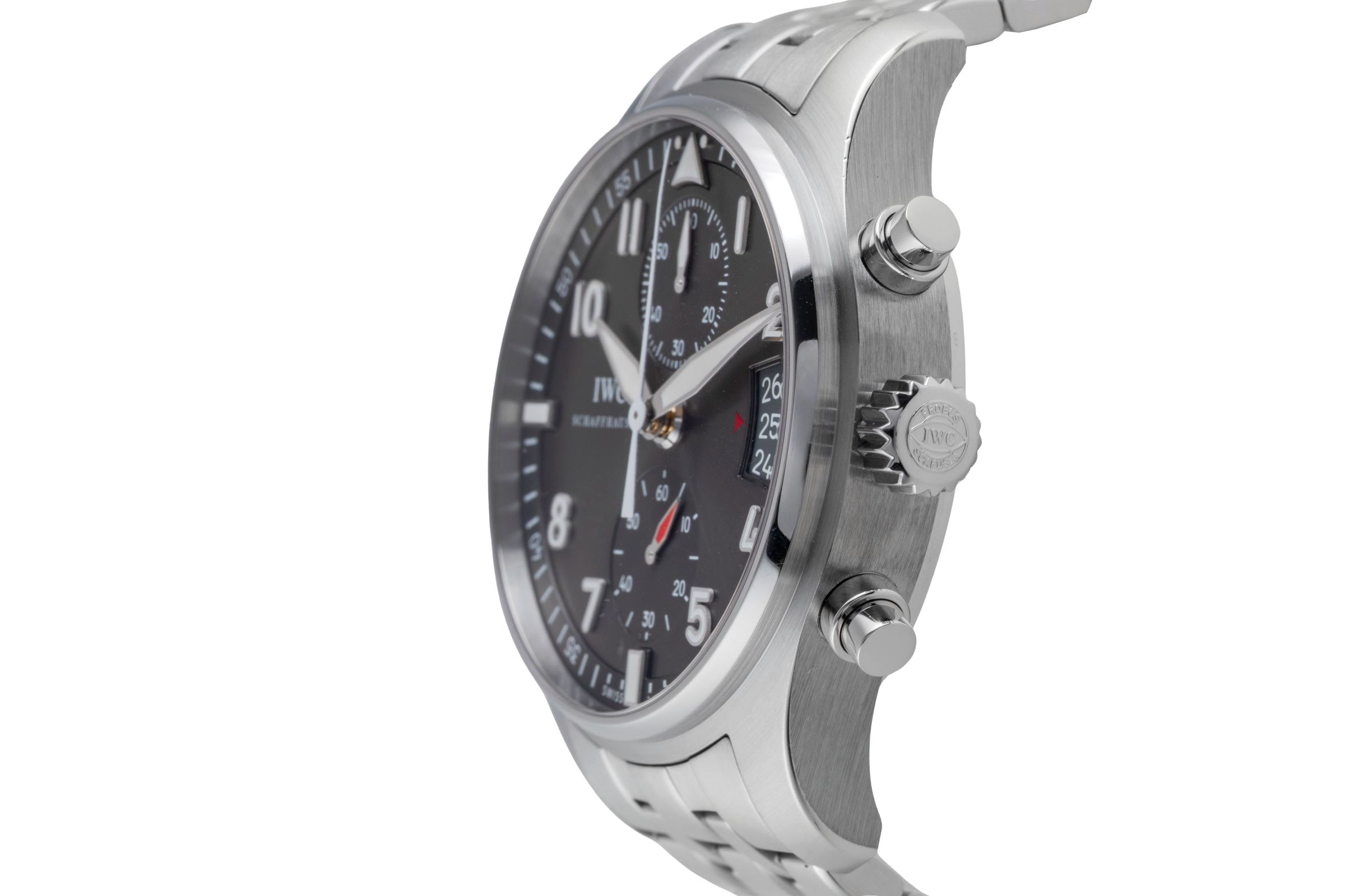 Alternative title: IWC IW387804 Pilot's Watch Spitfire Chronograph Bracelet; IWC Fliegeruhr Spitfire Chronograph Stahl Automatik Ref. IW387804 Papiere [2504843]
