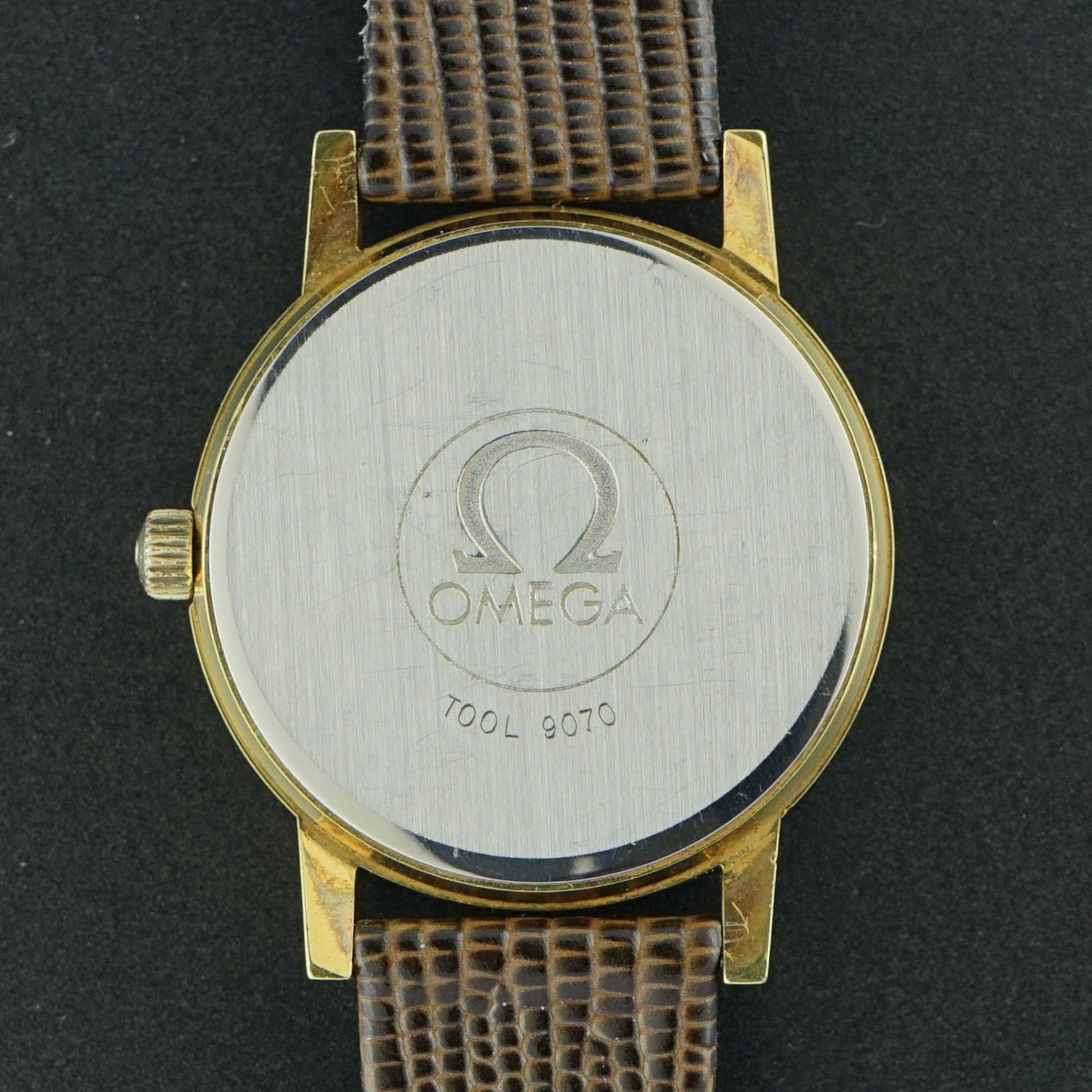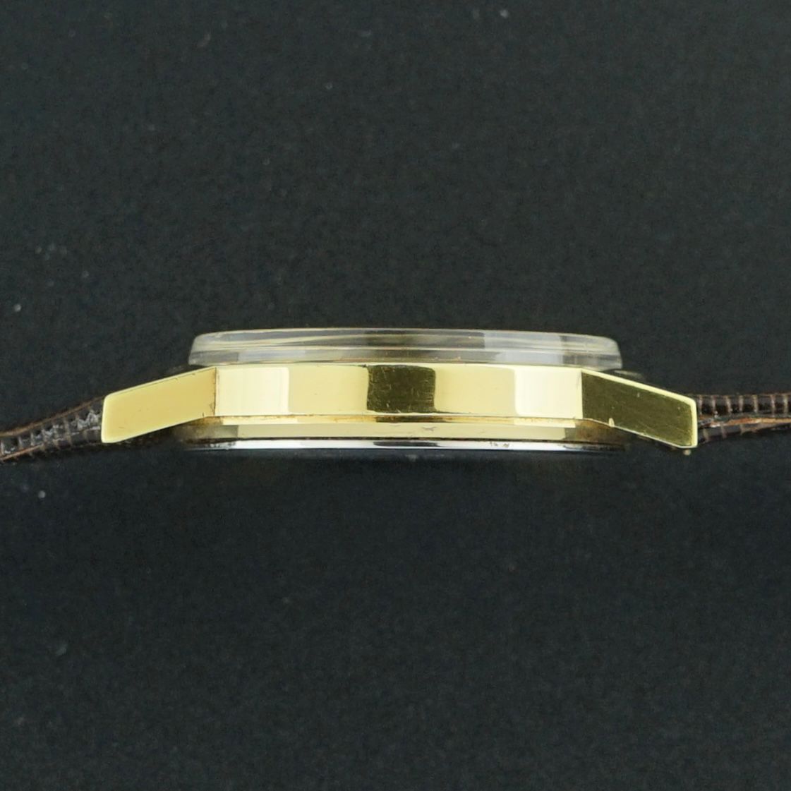 It is fitted with a brown leather strap with a lizard grain motif, the only non-original component to the watch. Overall, the condition is great, making this a beautiful and timeless dress watch.