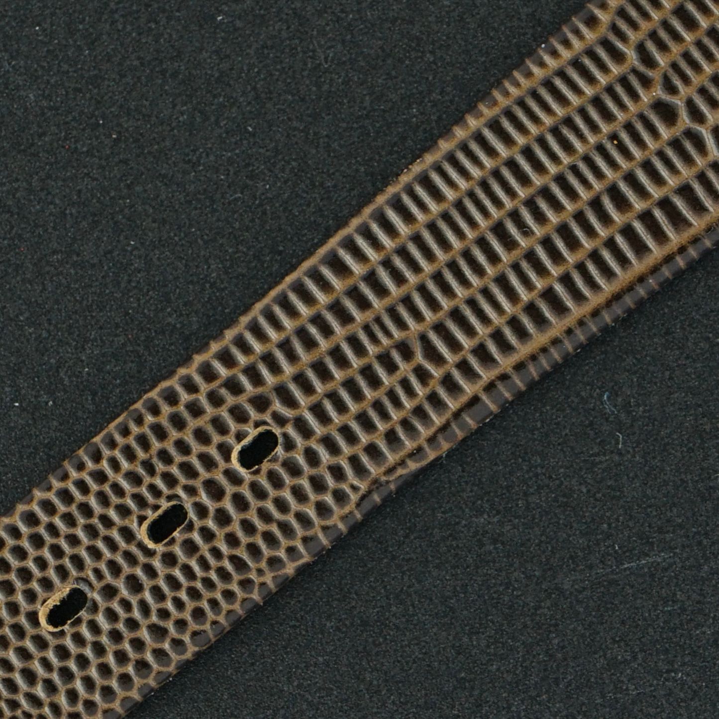Strap: A brown leather strap with a lizard motif. (Fits a 12 to 20cm wrist)
