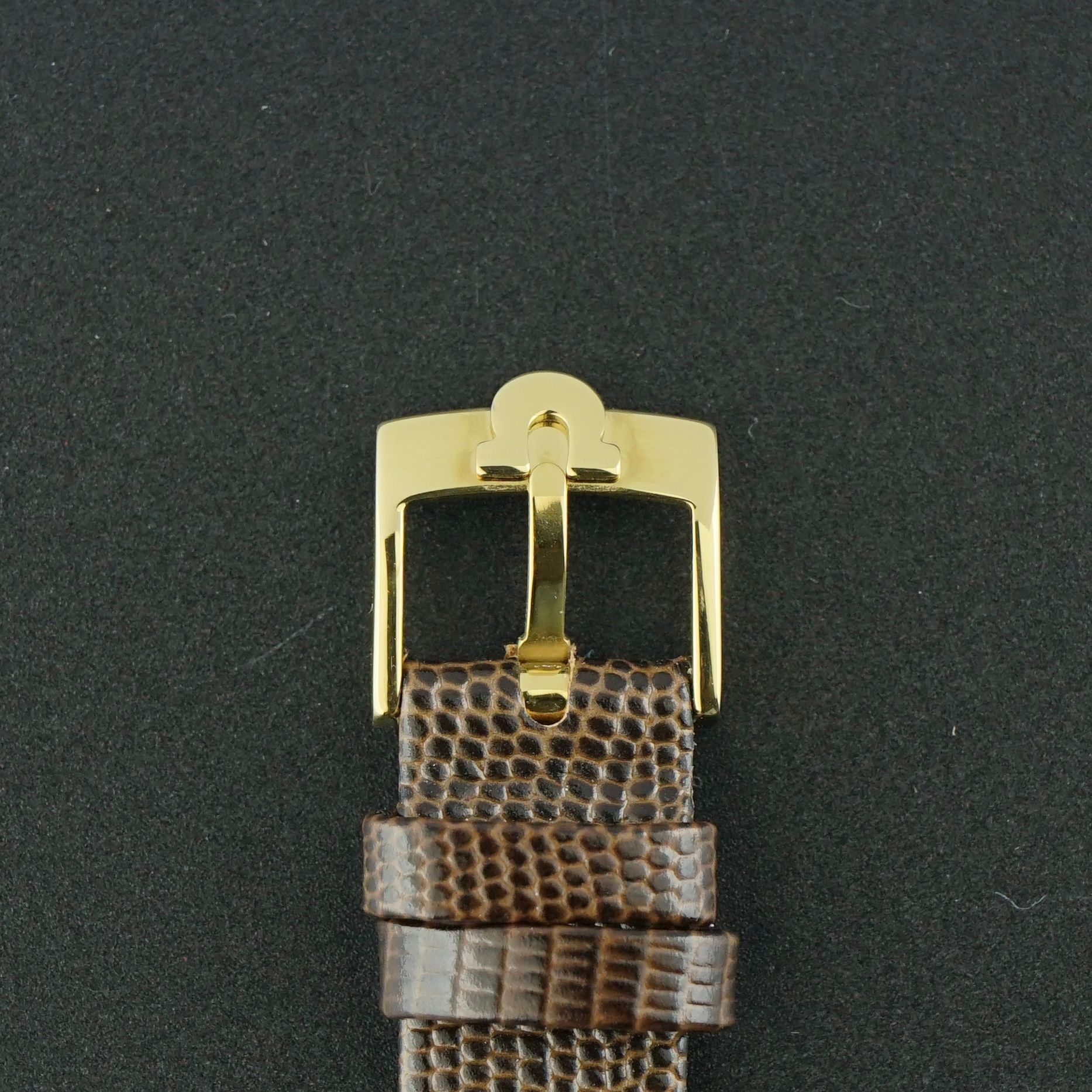 Sie ist mit einem braunen Lederarmband mit einem Echsenmuster ausgestattet, dem einzigen nicht-originalen Bestandteil der Uhr. Insgesamt ist der Zustand großartig, was diese Uhr zu einer schönen und zeitlosen Dresswatch macht.
