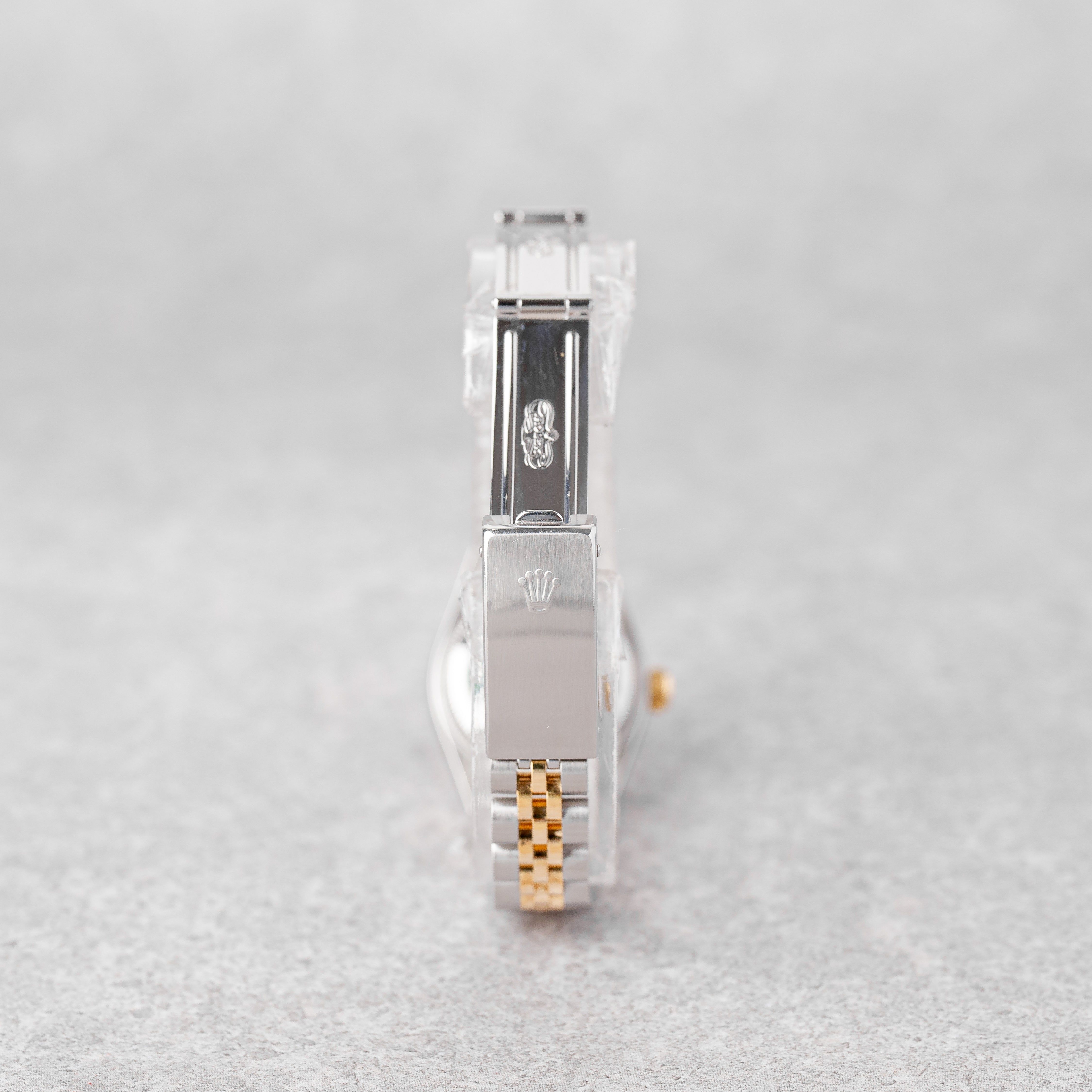 Diese elegante Rolex Lady-Datejust 26 Ref. 69173 S-Seriennummer verfügt über ein auffälliges champagnerfarbenes Zifferblatt, das mit Diamant-Stundenmarkierungen versehen ist, und kombiniert dies mit der zeitlosen zweifarbigen Konstruktion aus Edelstahl und Gelbgold. Passt an Handgelenke bis zu 14 cm. Angeboten als Full Set (Box und Garantieschein), befindet sich die Uhr in sehr gutem Zustand und wurde von unserem Uhrmacher im 03/2026 gewartet. Sie kommt außerdem mit 12 Monaten Garantie von uns. Ein wunderschöner und raffinierter Klassiker, perfekt für den täglichen Gebrauch oder als besonderes Geschenk.