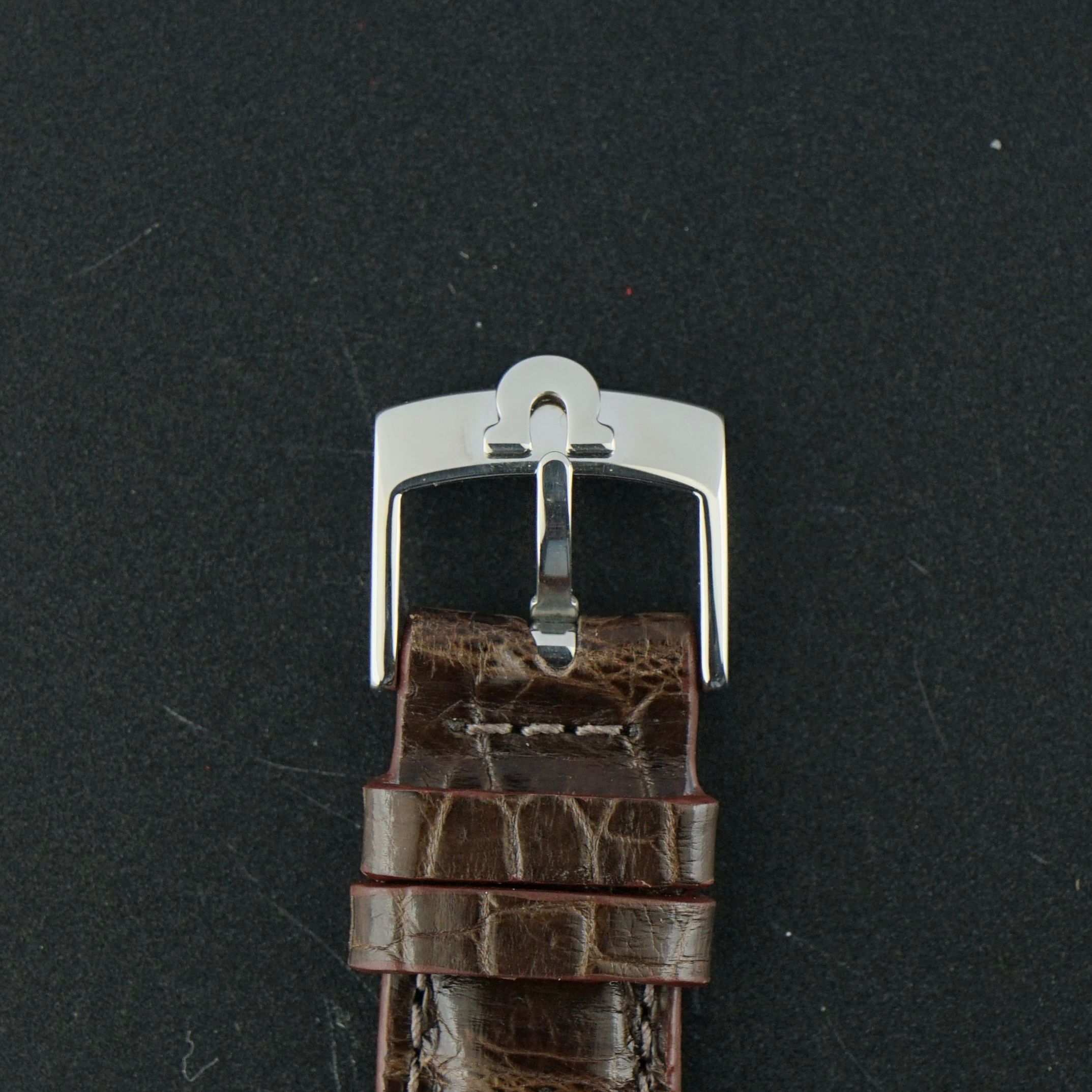 Strap: A brown top-grain leather strap with a crocodile motif. (Fits a 12 to 20cm wrist)