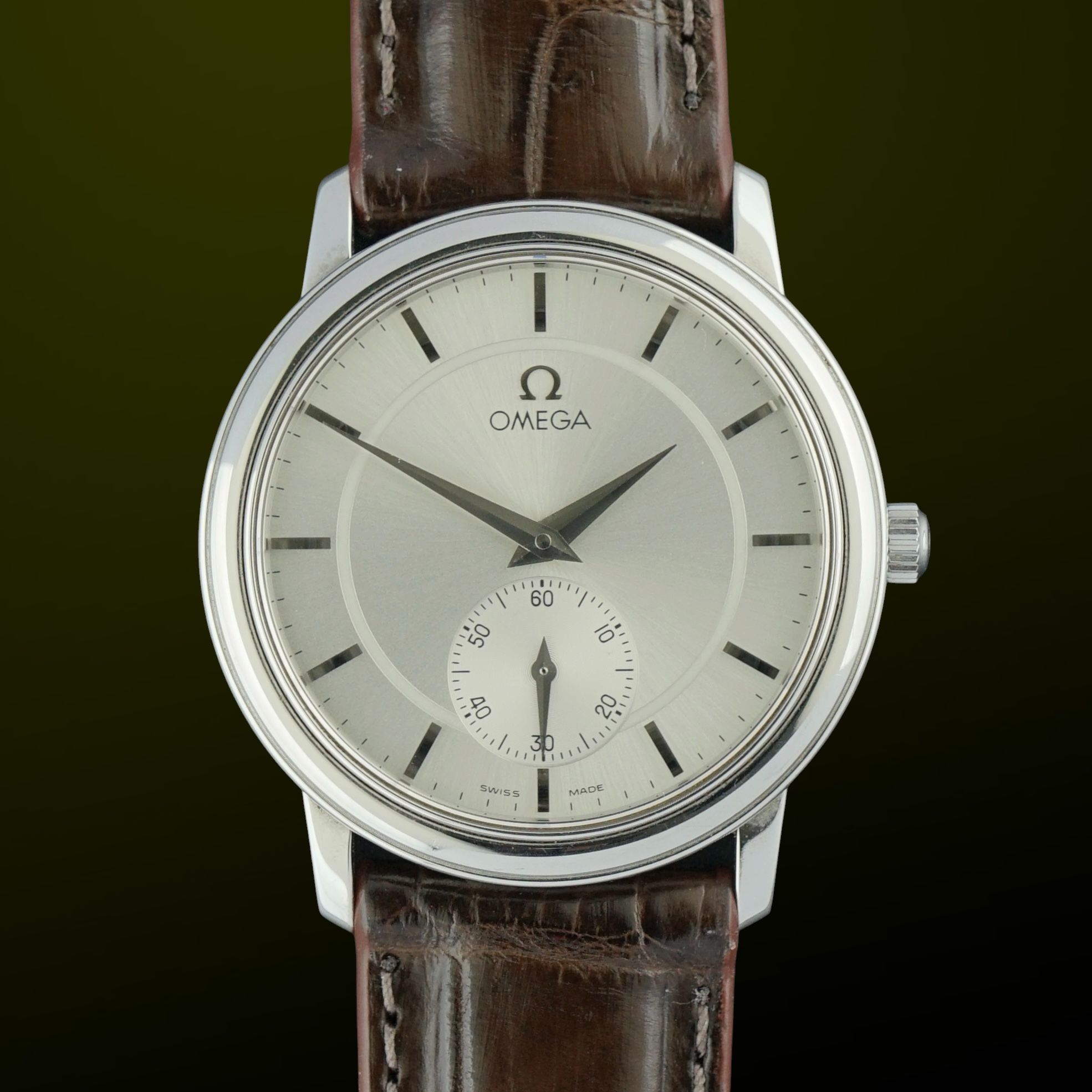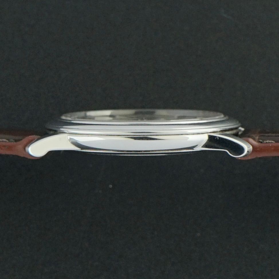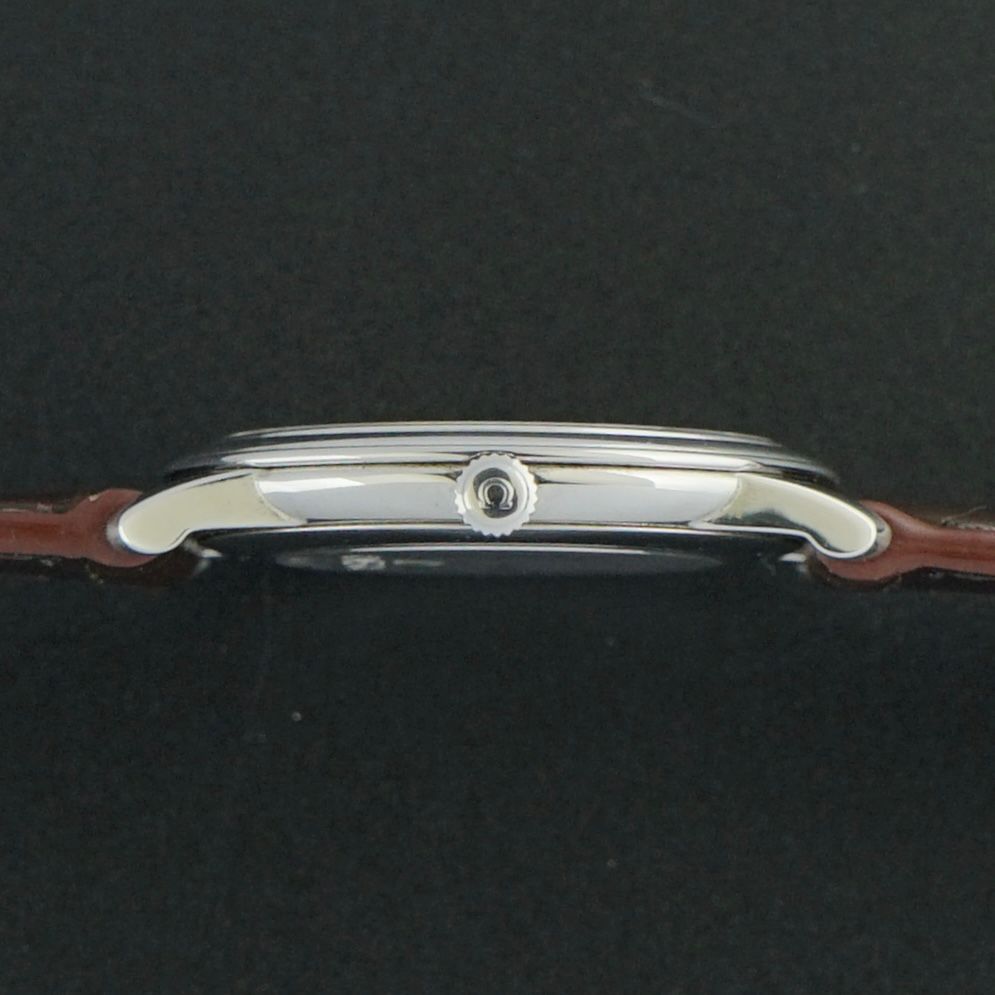 This vintage Omega De Ville Prestige, produced in 1993, features a white dial with fine textured motifs and a subtle sunburst effect, accented by silver hands and the Omega logo. It houses the caliber 651 manual-wind movement, serviced in March 2026 and currently running excellently. The movement provides a small seconds subdial at six o’clock. The watch remains entirely original except for the brand new leather strap and is in great shape, suitable for daily wear or as an elegant dress watch thanks to its refined design and slim profile.Year of production: 1993