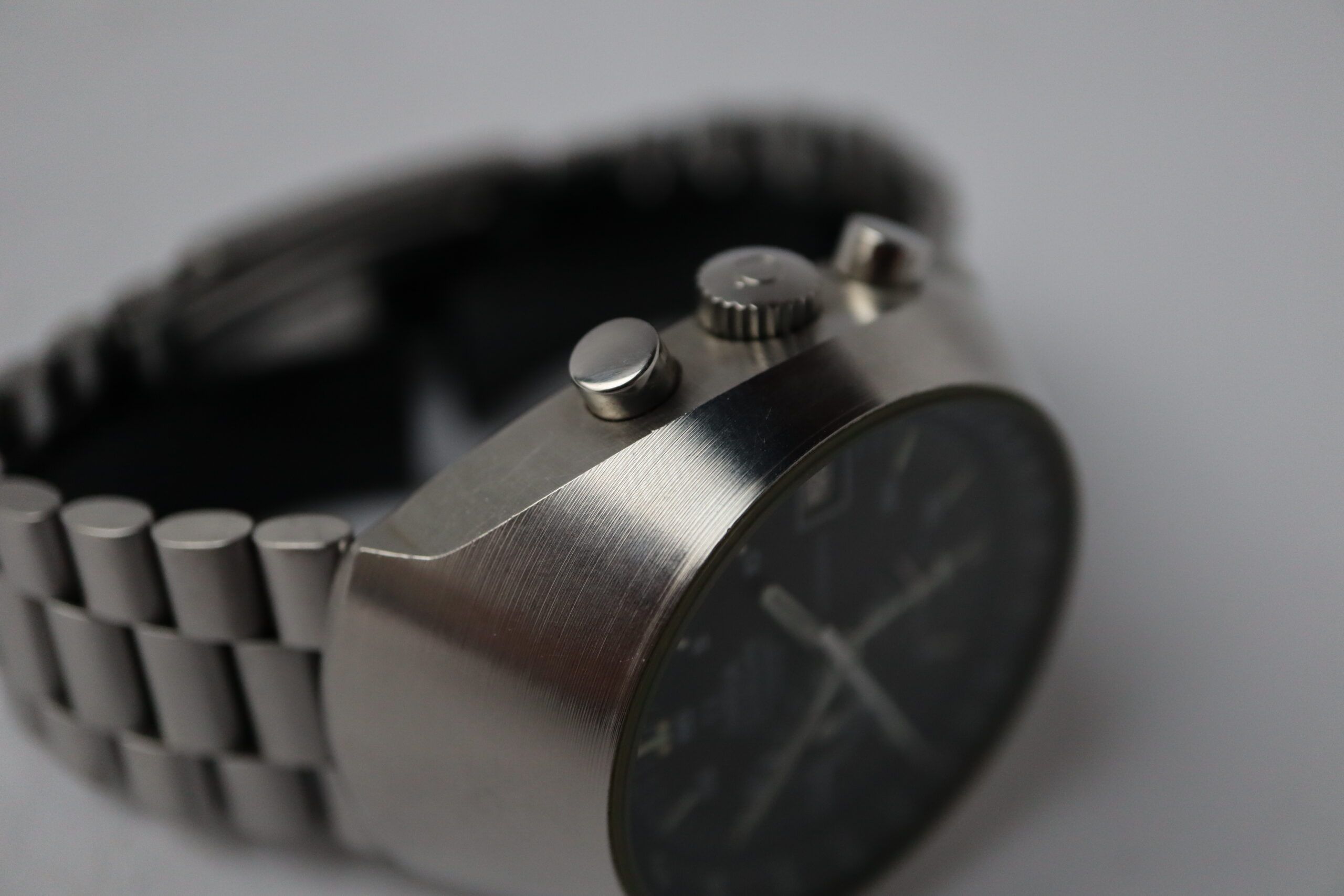 - Deutlich sichtbare Gebrauchsspuren, darunter Kratzer, Dellen oder spürbarer Verschleiß an Armband oder Schließe. Eine Wartung kann künftig empfohlen sein. Mechanisch funktionsfähig, sofern nicht anders angegeben.