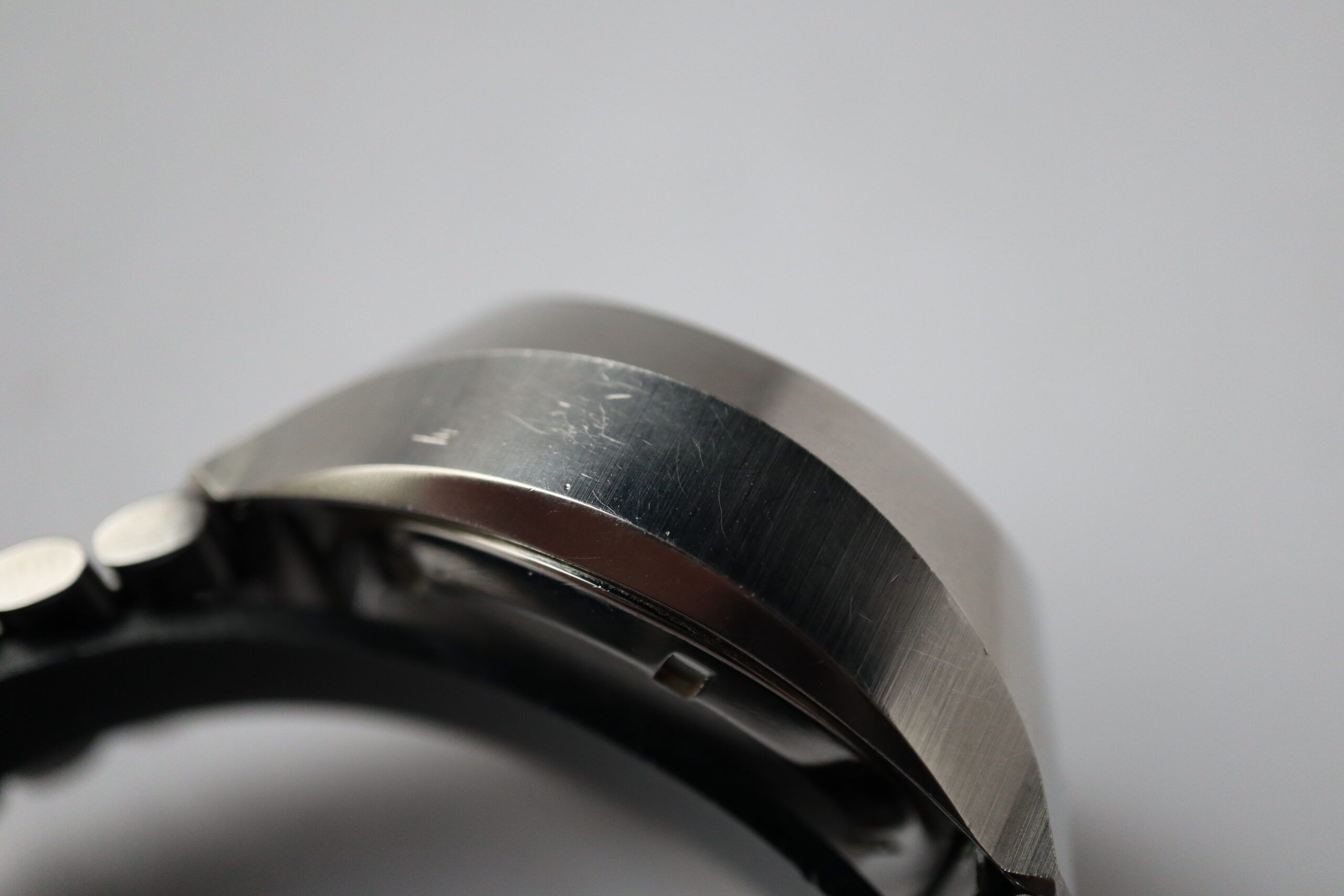 - Sichtbare Gebrauchsspuren wie Kratzer, kleine Dellen oder leichtes Spiel im Armband. Kann professionell poliert worden sein. Mechanisch voll funktionsfähig.