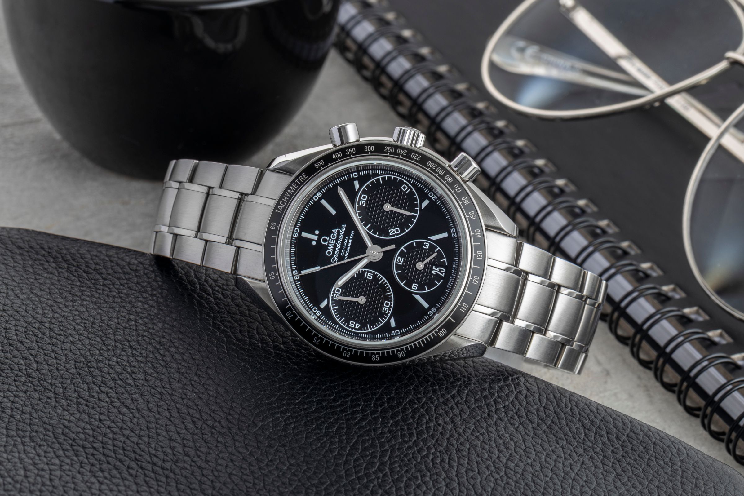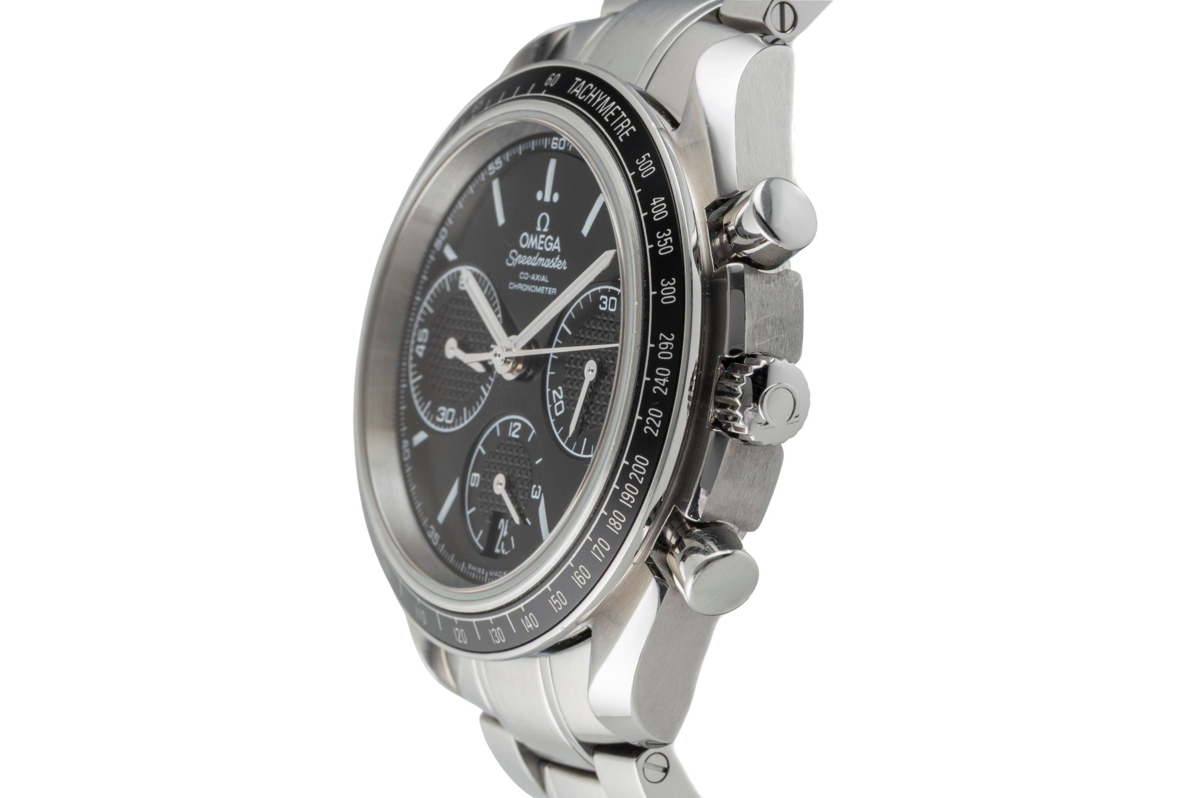 Alternative title: Omega 326.30.40.50.01.001 Speedmaster Racing Co-Axial Chronograph Stainless Steel / Black / Bracelet; Omega Speedmaster Racing Chronograph Automatik Ref. 326.30.40.50.01.001 B&P [2601402]