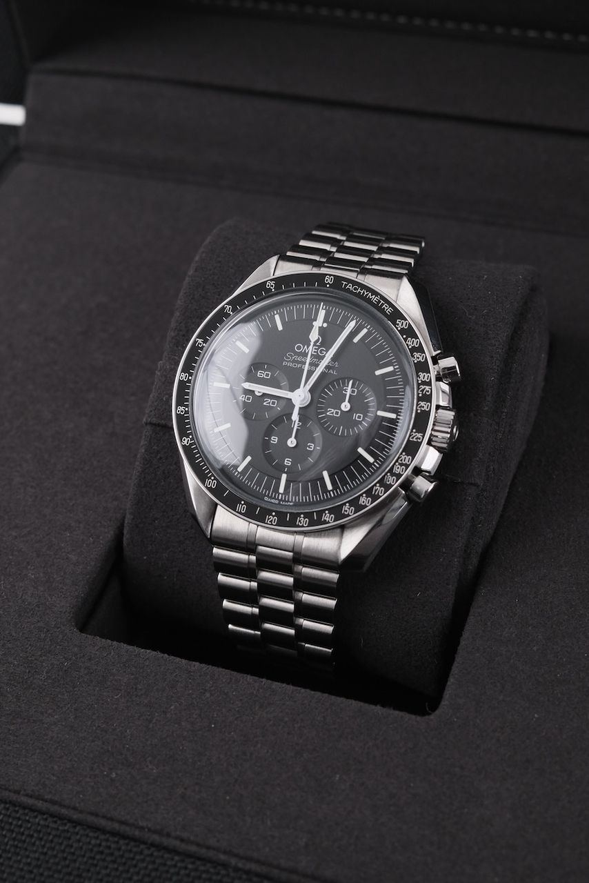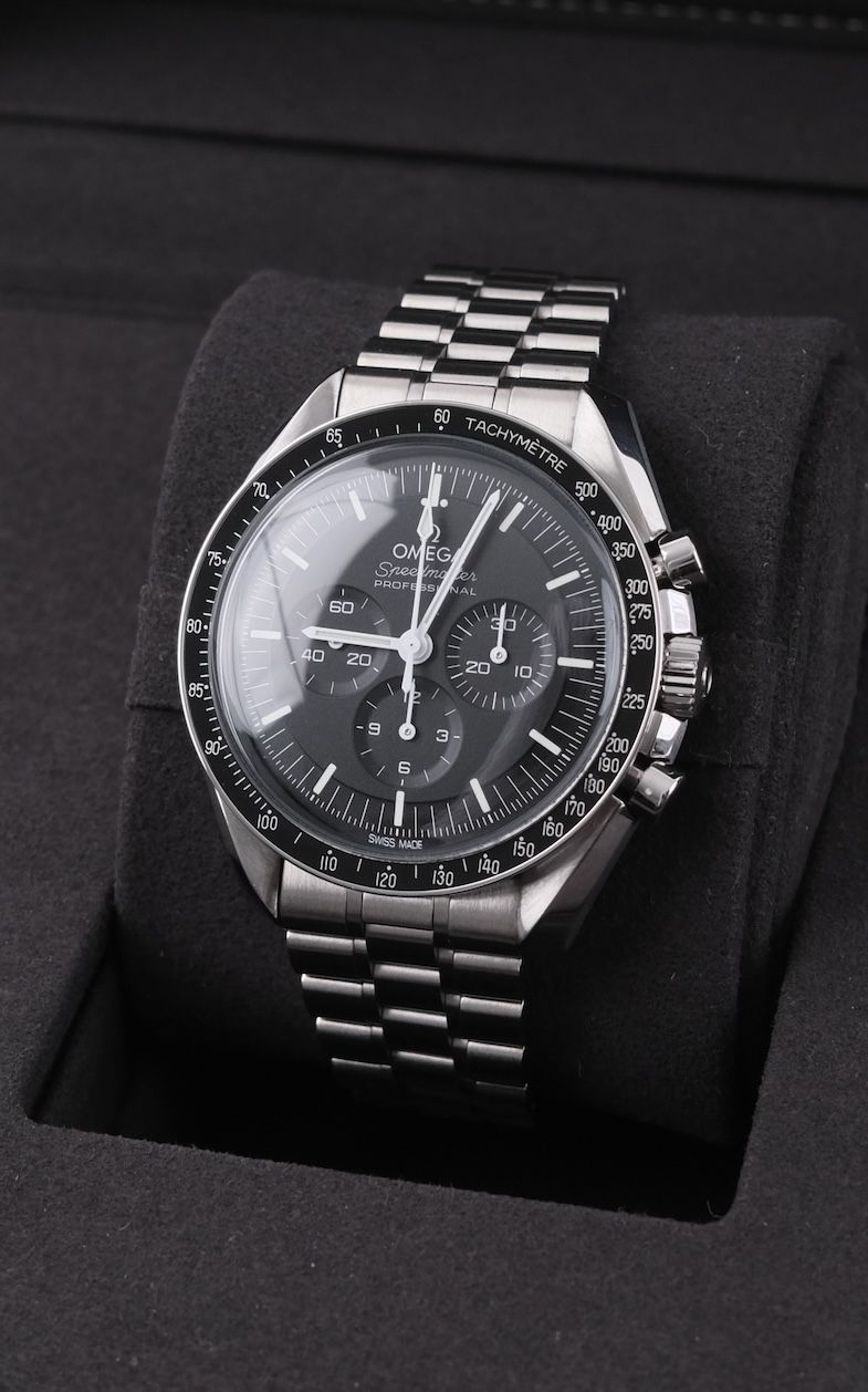 **Watch Description**Ready for your new dream watch? Perhaps this beautiful Omega Speedmaster Professional made of Steel will soon be on your wrist. Whether vintage or modern - with over 200 watches in stock, we always have your new luxury watch available for you immediately - whether you are a first-time buyer or your watch collection needs a new addition.