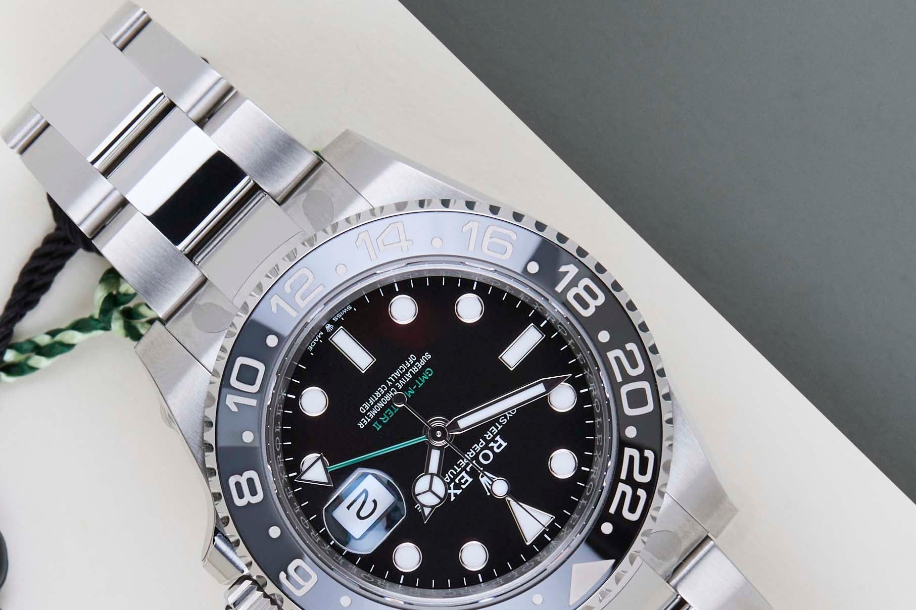 Die Referenz 126710 ist die zweite Generation des GMT-Master II mit einer Keramiklünette. Das Material für diese Lünette nennt sich 'Cerachrom', das vollständig intern von Rolex entwickelt wurde, um eine hohe Kratzfestigkeit zu gewährleisten.