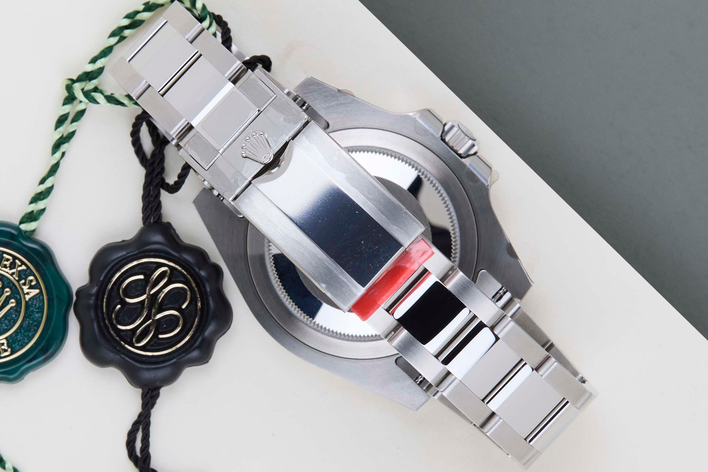 Dieser Rolex GMT-Master II ist neu und ungetragen und wird mit der originalen Rolex Garantiekarte und Box geliefert. Darüber hinaus hat die Uhr noch eine internationale Rolex Garantie bis Februar 2031.