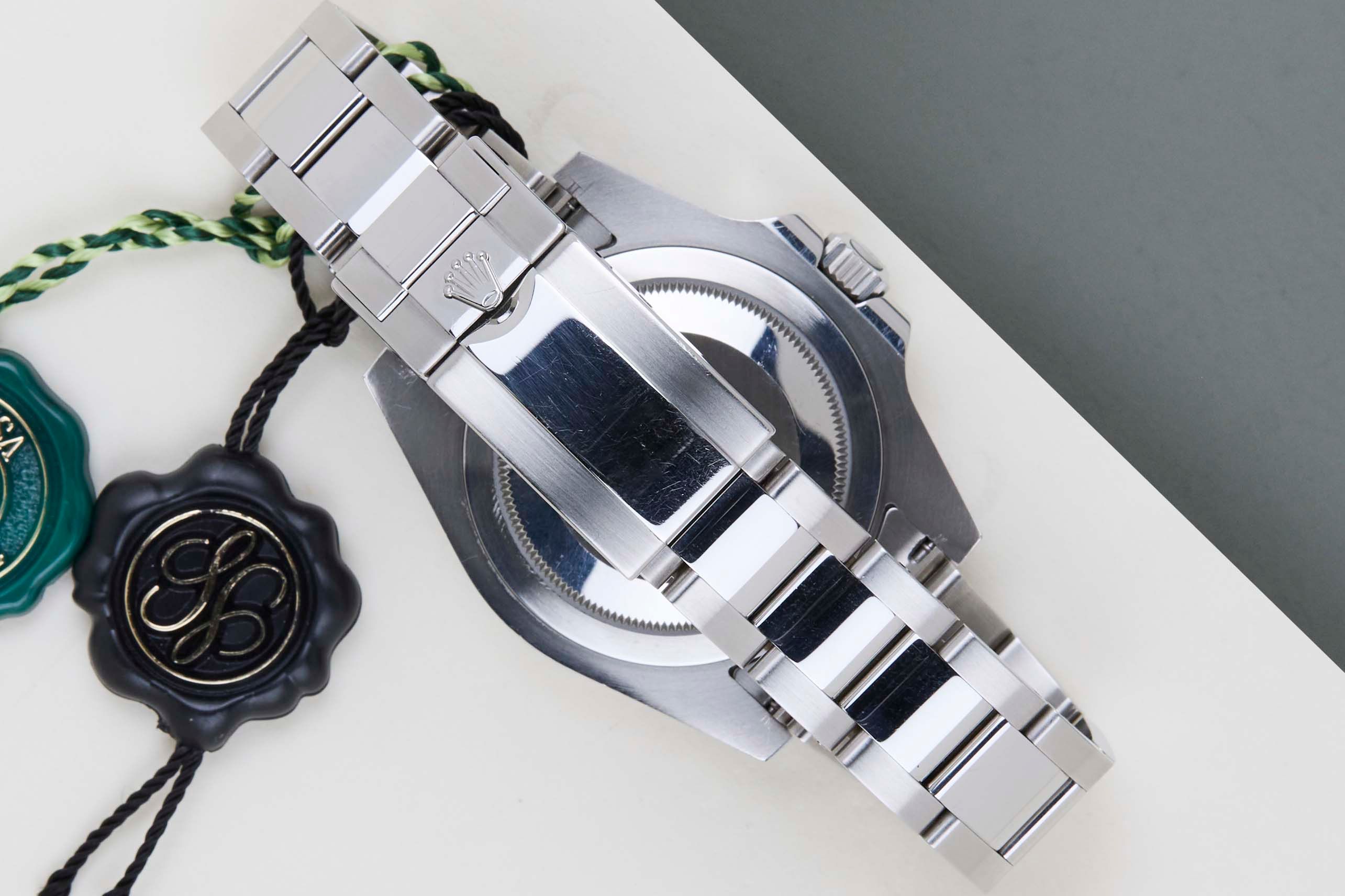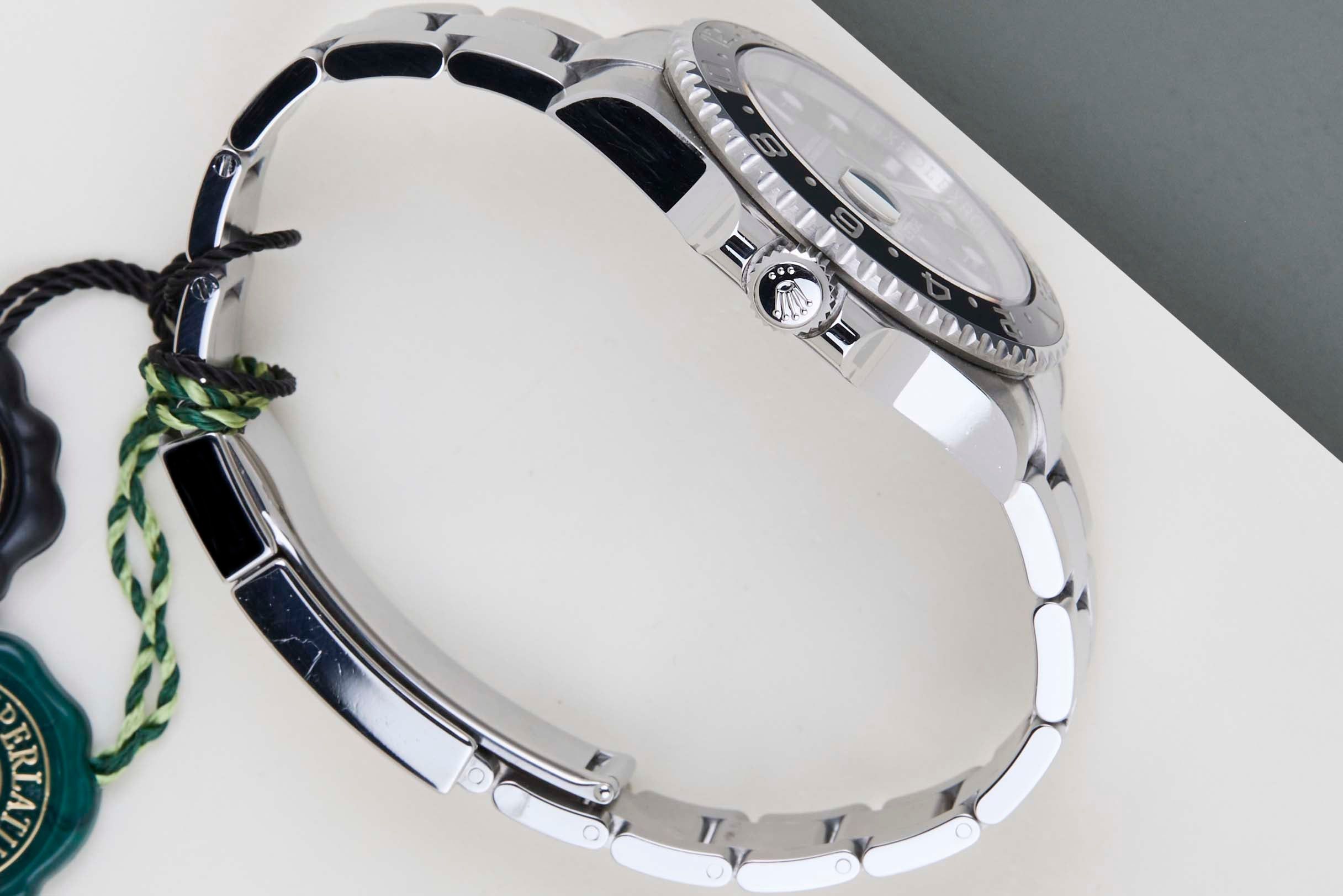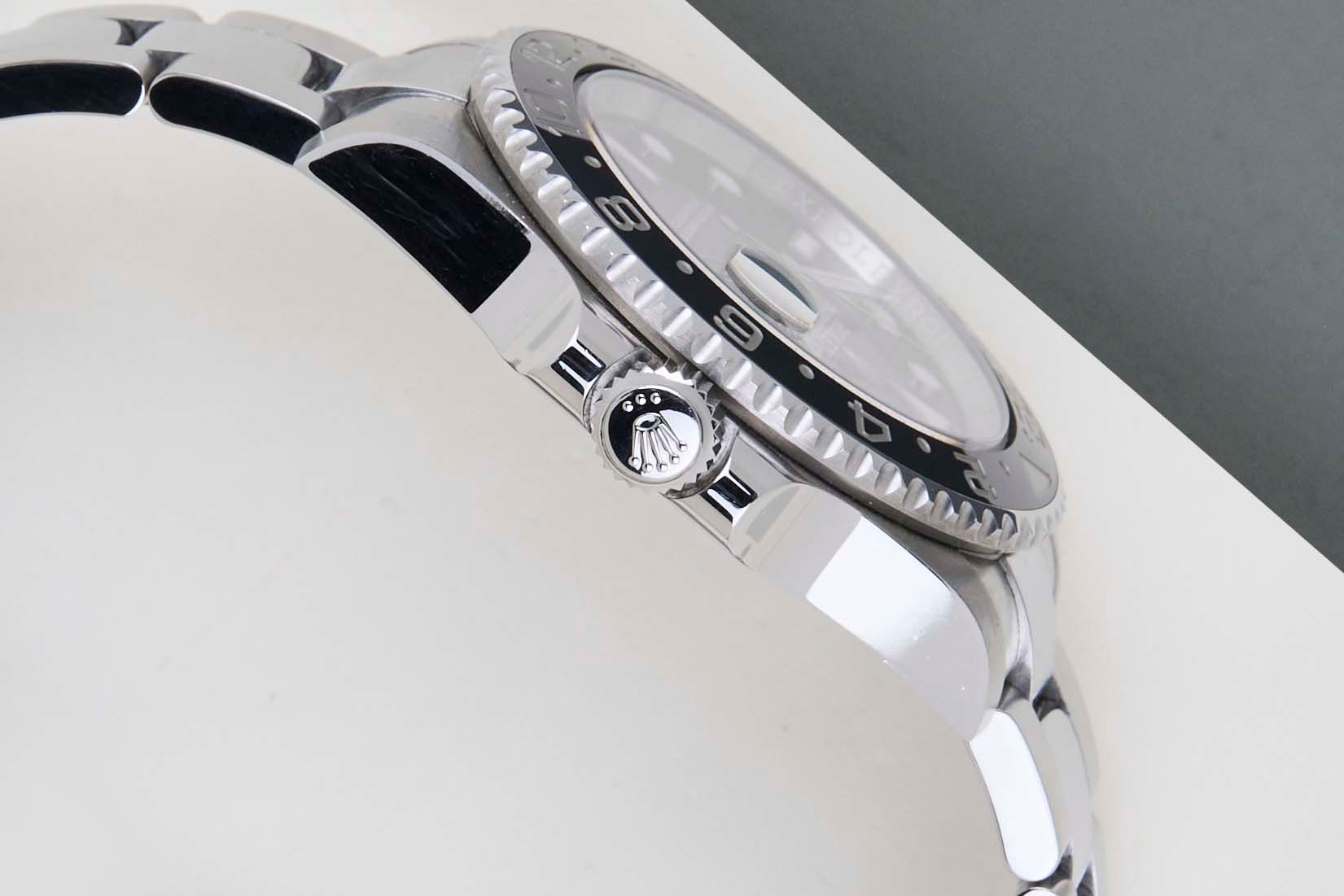 The Rolex GMT was originally designed in collaboration with Pan American Airways and issued to their crews on long-haul flights. The dual time zone can track local and home time, which is a useful tool for pilots and those who are traveling a lot across different time zones.The reference 116710 is the first generation of the GMT-Master II with a Ceramic Bezel. The material to make this bezel is called 'Cerachrom', which was developed completely in-house by Rolex to be highly scratch-resistant.This Rolex GMT-Master II was sold for the first time in April 2017.This GMT-Master is made of stainless steel and is fitted with an Oyster Bracelet, which is equipped with the Easylink. This extension, allows the wearer to either extend or shorten the bracelet by 5 millimetres, improving the wearability and usability of the watch. This GMT is equipped with Black Bezel, which can be derived from the reference 116710LN, Lunette Noir.This Rolex GMT-Master II is in a Mint condition and comes with the original Rolex Warranty Card and Box. Furthermore, the watch has been serviced by our watchmaker, and therefore it comes with One Year of Steiner Warranty.
