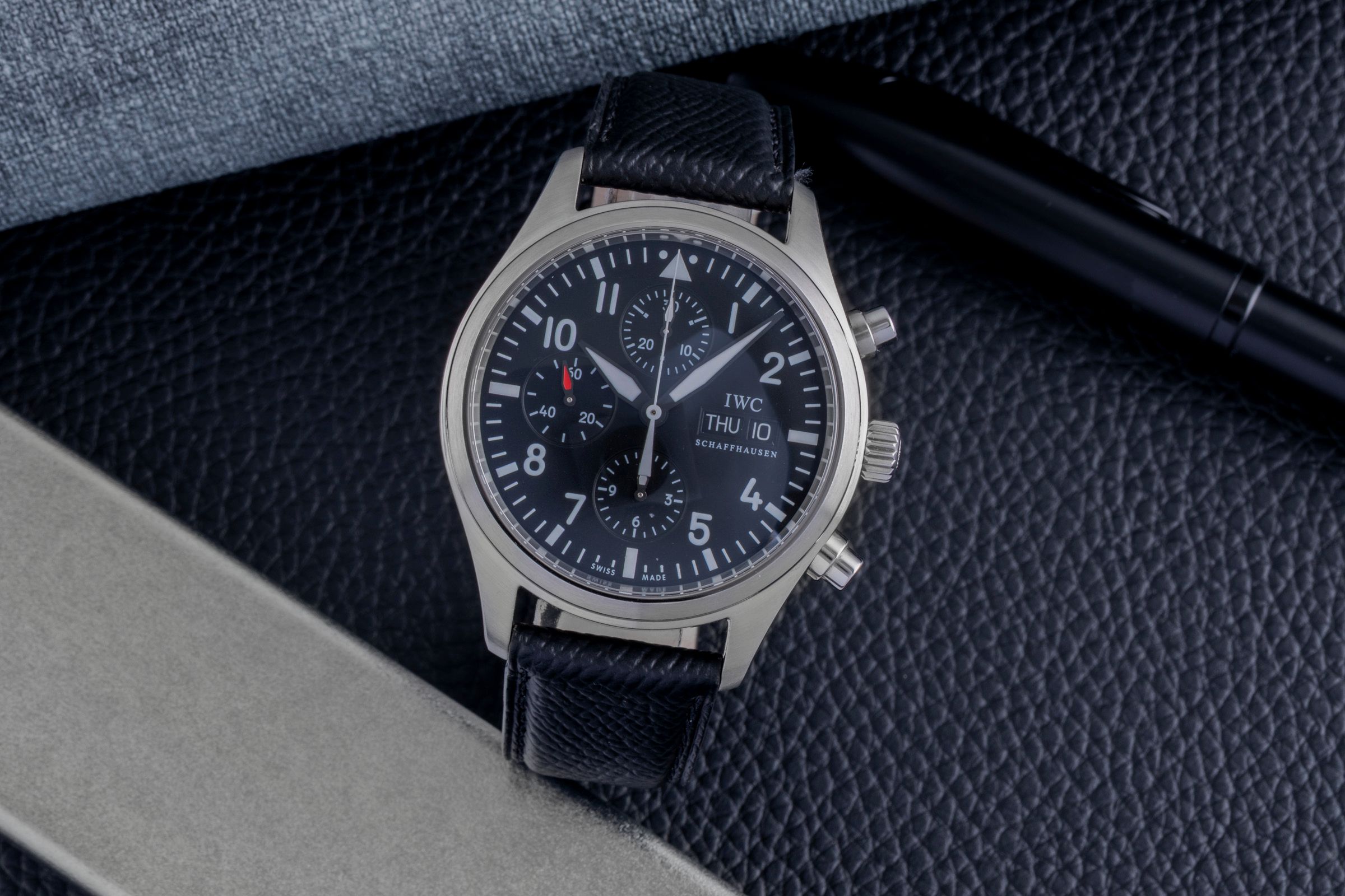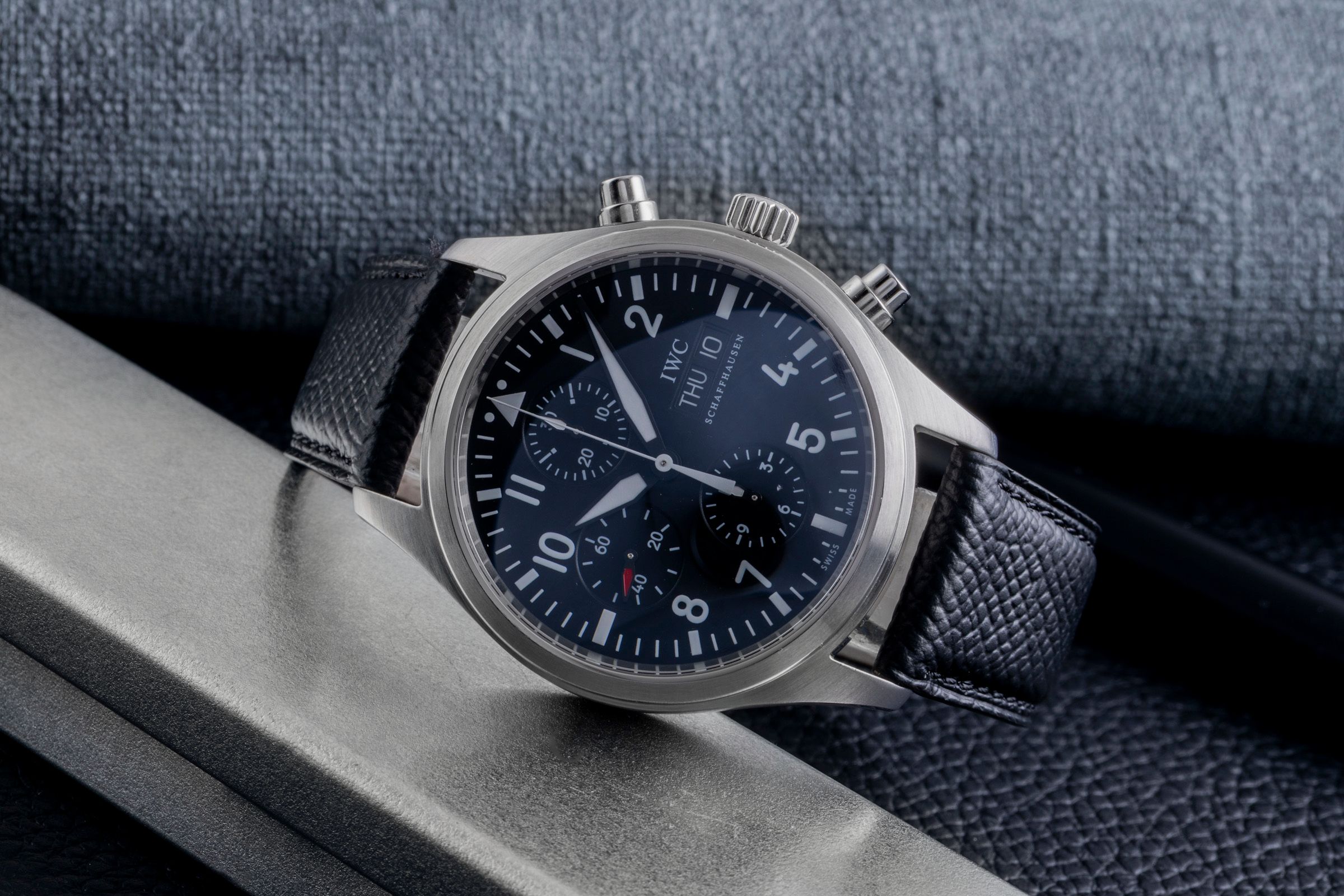 Alternative title: IWC IW371701 Pilot's Watch Chronograph Stainless Steel / Black / Strap; IWC Schaffhausen Fliegeruhr Chronograph Automatik Stahl Ref. IW371701 VP: 7800 € [2600490]