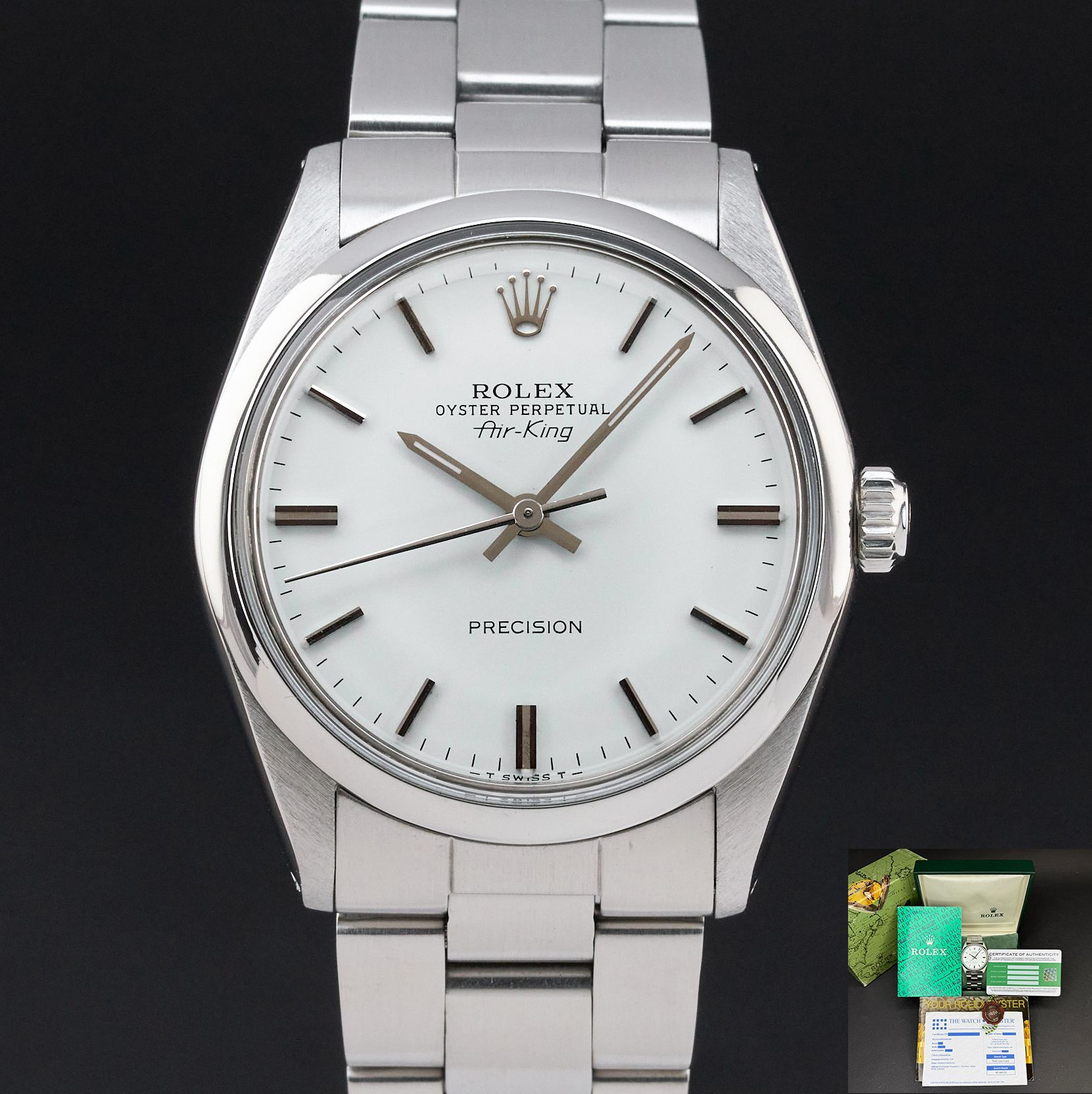 Rolex Air King, 5500, 34mm, 1988, Steel, White dial, Box, 1y warranty