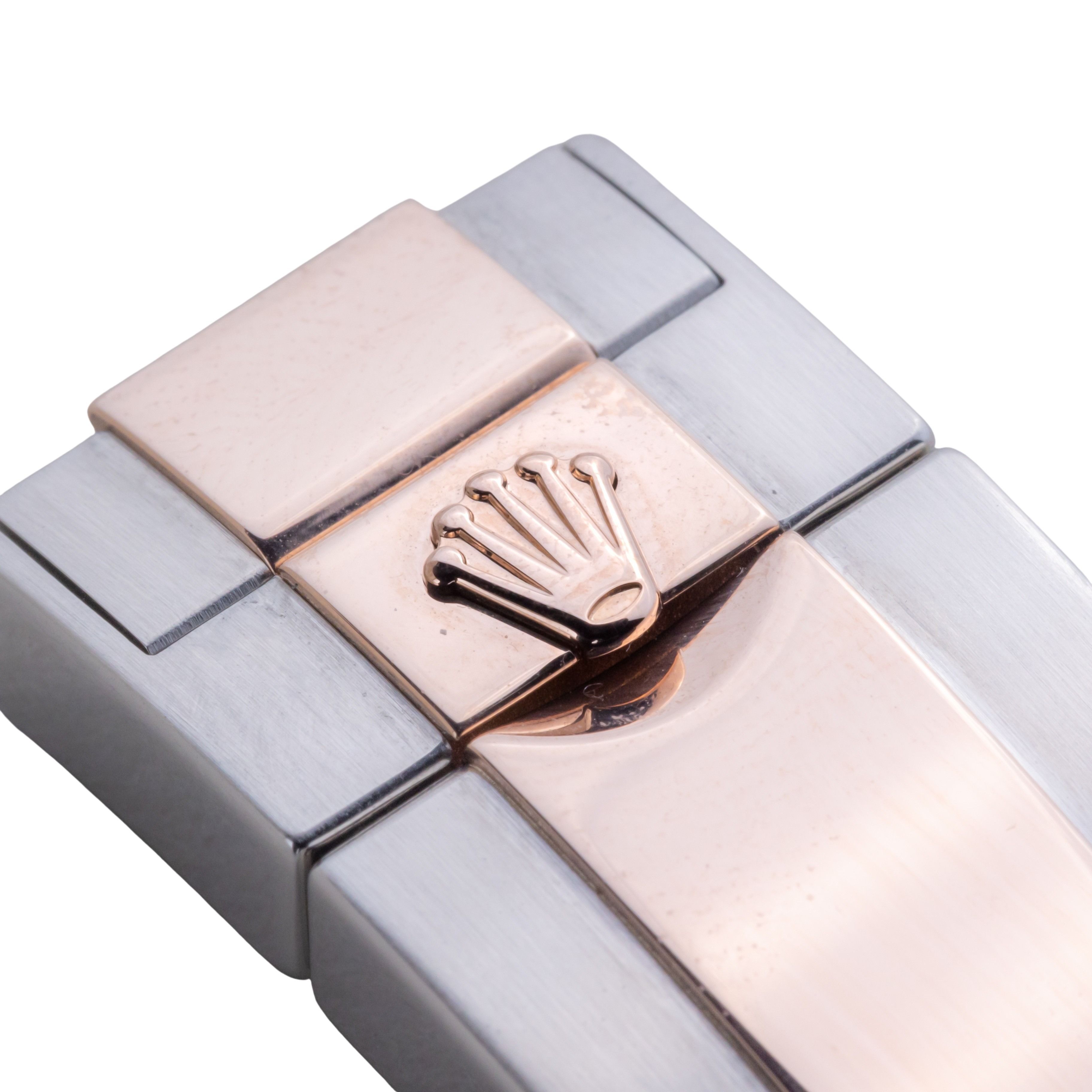 - Sichtbare Gebrauchsspuren wie Kratzer, kleine Dellen oder leichtes Spiel im Armband. Kann professionell poliert worden sein. Mechanisch voll funktionsfähig.
