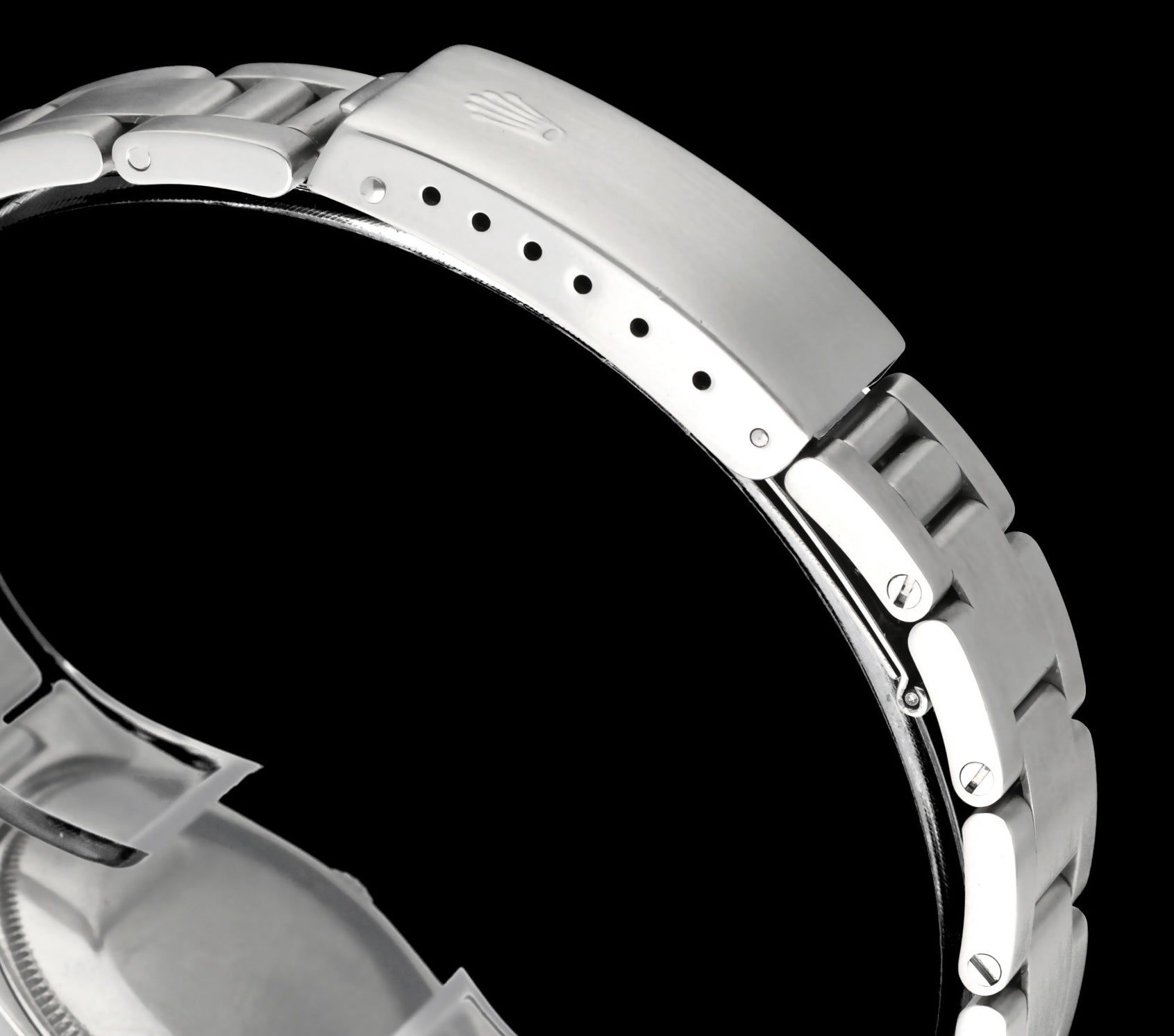 - Leichte Gebrauchsspuren wie feine Kratzer oder kleine Oberflächenkratzer. Gehäuse, Lünette und Armband behalten ihre scharfen Kanten und die ursprüngliche Form. Kann professionell poliert worden sein, ohne die originalen Konturen zu verändern. Mechanisch voll funktionsfähig.