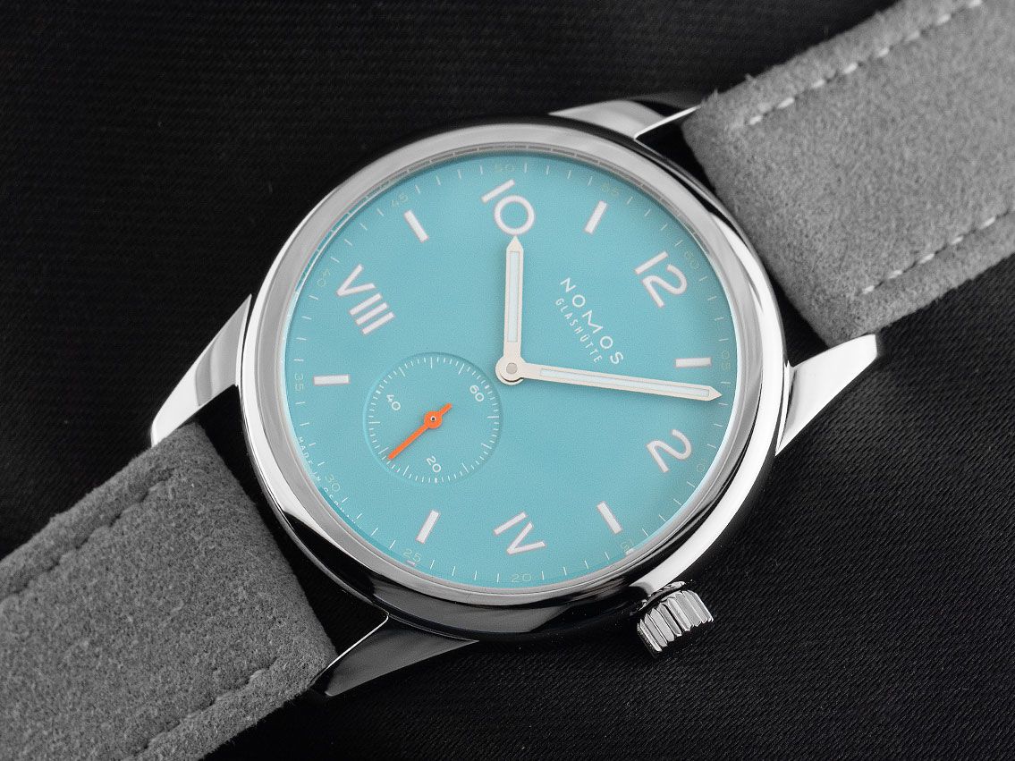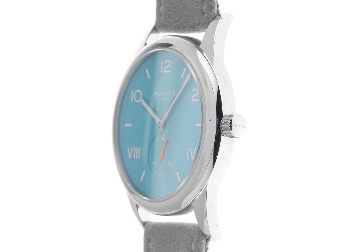 Nomos Glashütte Club Campus 38 Endless Blue Stahl Handaufzug Armband Velours