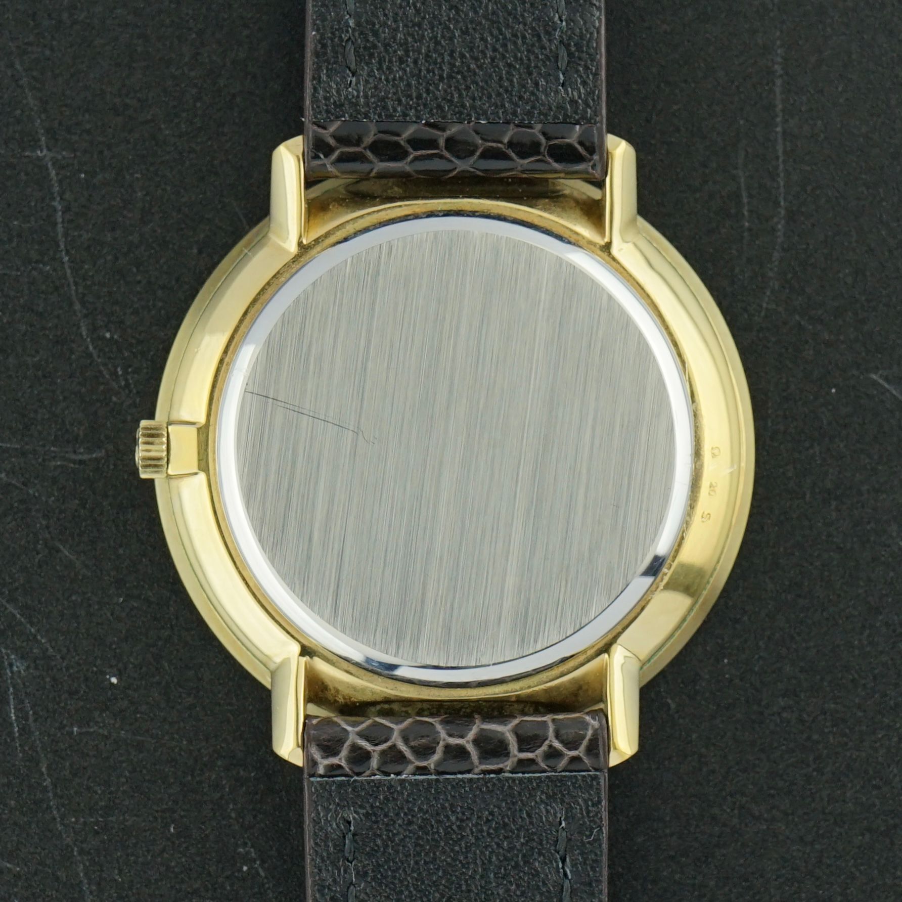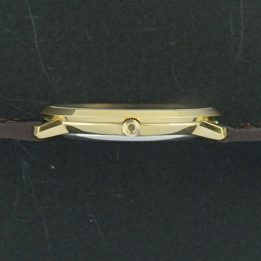 Eine Vintage Omega De Ville aus 1972, mit einem wunderschönen 36mm goldplattierten Gehäuse in ausgezeichnetem Zustand und der originalen Politur, die durchgehend intakt ist. Die Uhr hat ein goldenes Zifferblatt mit römischen Ziffern und eleganten Blattzeigern. Im Inneren befindet sich ein Kaliber 711 Automatikwerk, das im April 2026 überholt wurde und gut läuft und funktioniert. Sie ist mit einem braunen Rindslederarmband mit Krokodilsmuster ausgestattet, dem einzigen nicht-originalen Bestandteil. Der Gesamtzustand ist unglaublich gut.