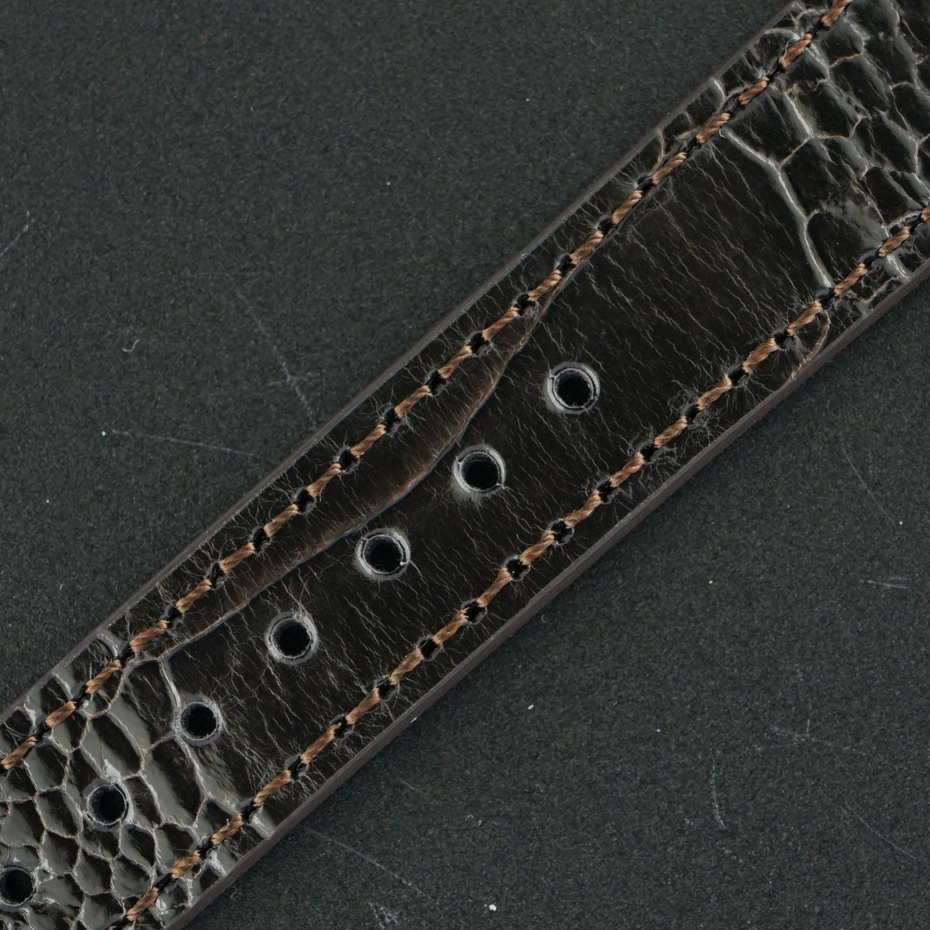 Strap: A brown top-grain leather strap with a crocodile motif. (Fits a 12 to 20cm wrist)