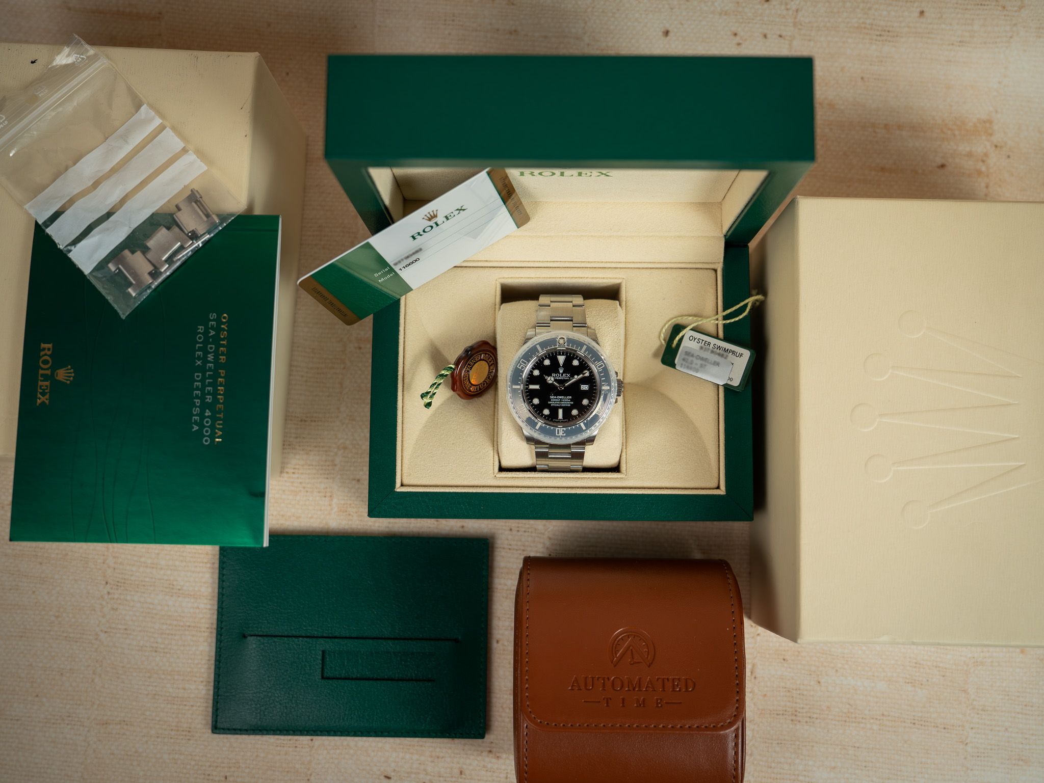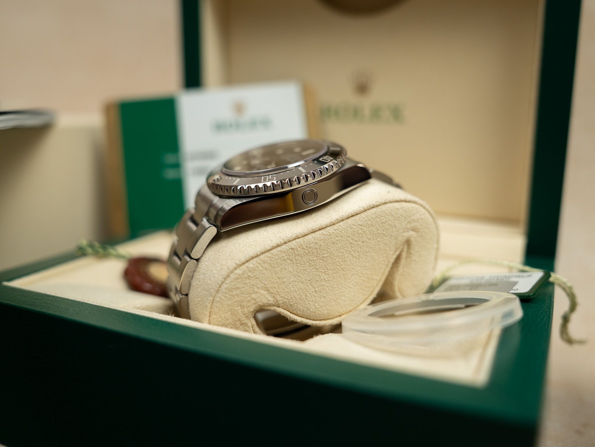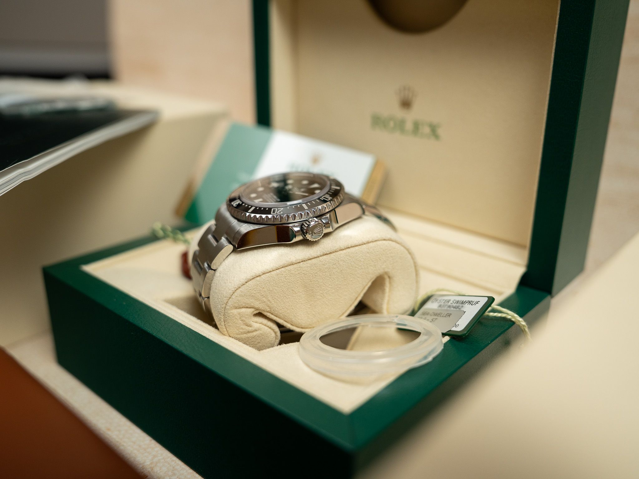 One of the thinner Rolex Sea-Dweller models.This watch comes from the first owner and comes as a full set with box, papers, hang tag, cosc cert.,..