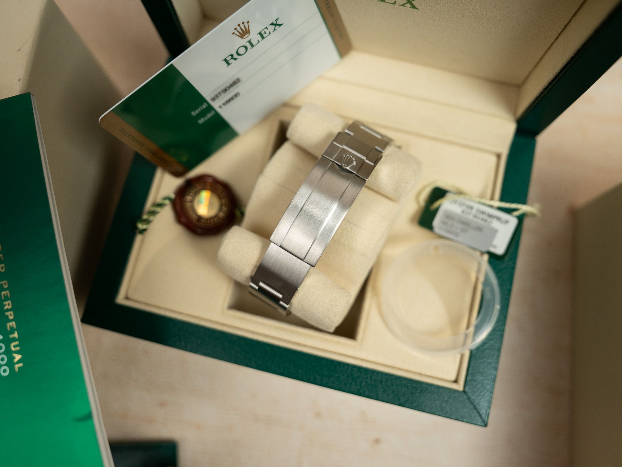 Set: Full set; includes original Rolex box, warranty card, booklets and tag.