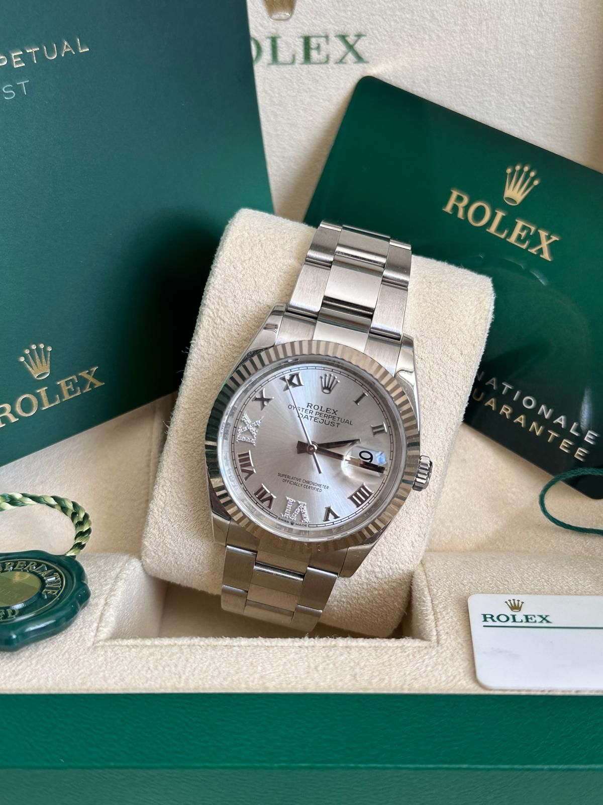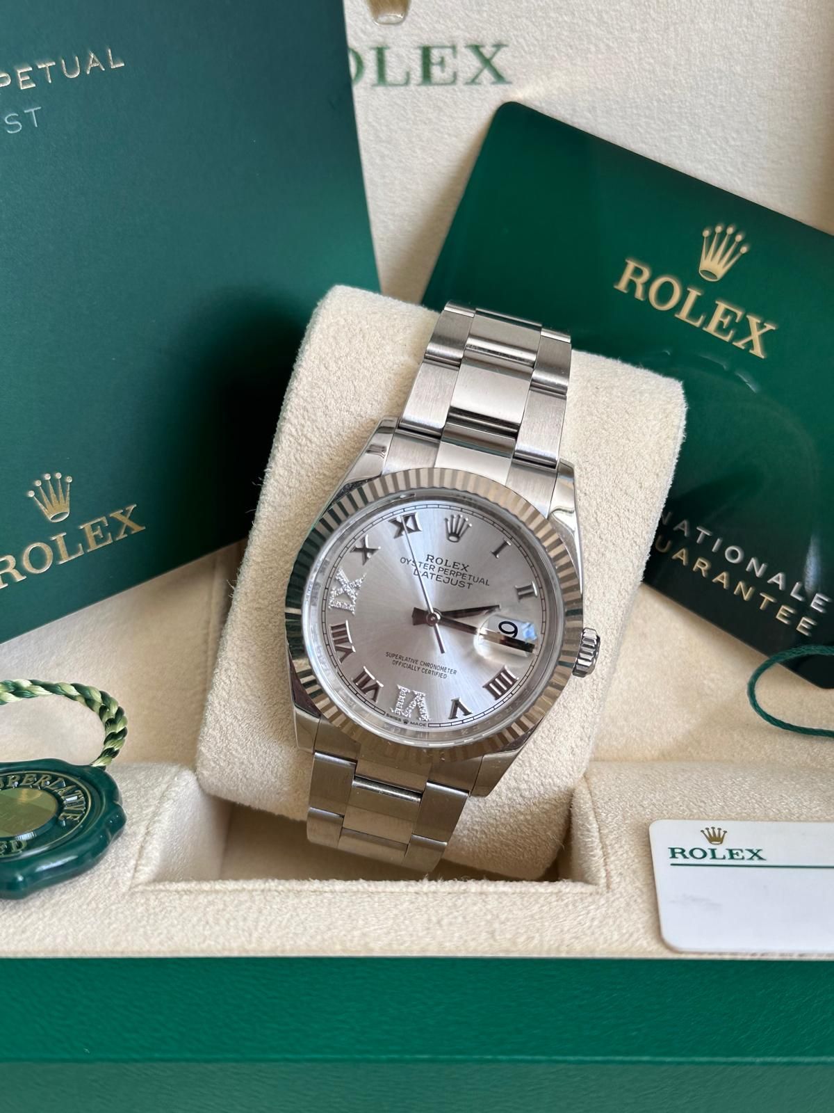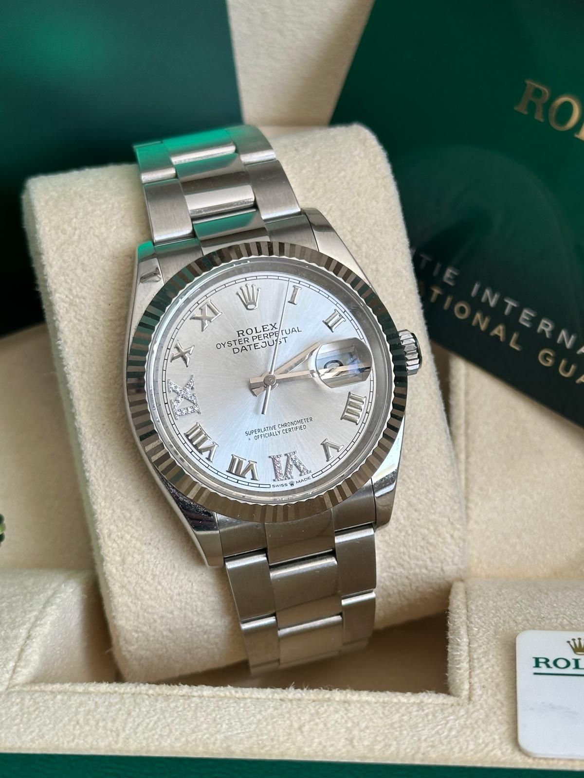 A fantastic opportunity to acquire a Rolex Datejust 36 with silver Roman diamond dial in outstanding condition—one of the most elegant and timeless models within the Rolex lineup.