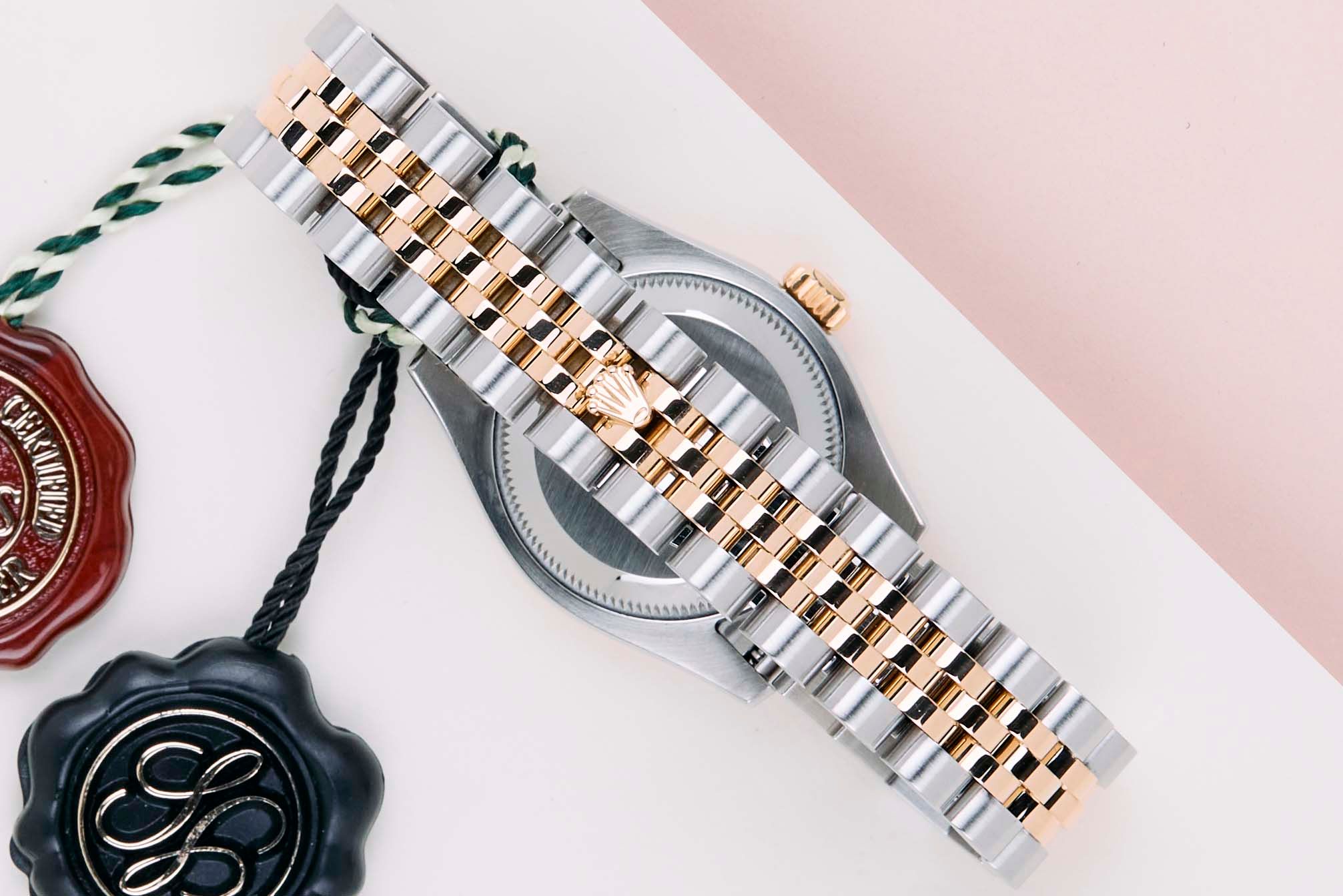 Full Set | Random Serial | European Rolex Warranty Card LC216 (Portugal) Rolex introduced the original Datejust in 1945 to celebrate the company's 40th anniversary. Due to the enormous success, Rolex released the first Lady-Datejust in 1957.This Datejust is made of a combination of 18k Yellow Gold and stainless steel and is fitted with a Jubilee bracelet which conceals the Crown clasp.This Rolex Datejust 26 is in Mint condition and comes with the original Rolex Warranty Card and Box. Furthermore, the watch has been serviced by our watchmakers and therefore has one year Steiner Warranty.