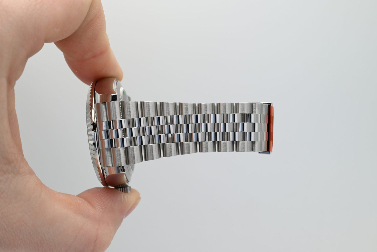 - Leichte Gebrauchsspuren wie feine Kratzer oder kleine Oberflächenkratzer. Gehäuse, Lünette und Armband behalten ihre scharfen Kanten und die ursprüngliche Form. Kann professionell poliert worden sein, ohne die originalen Konturen zu verändern. Mechanisch voll funktionsfähig.