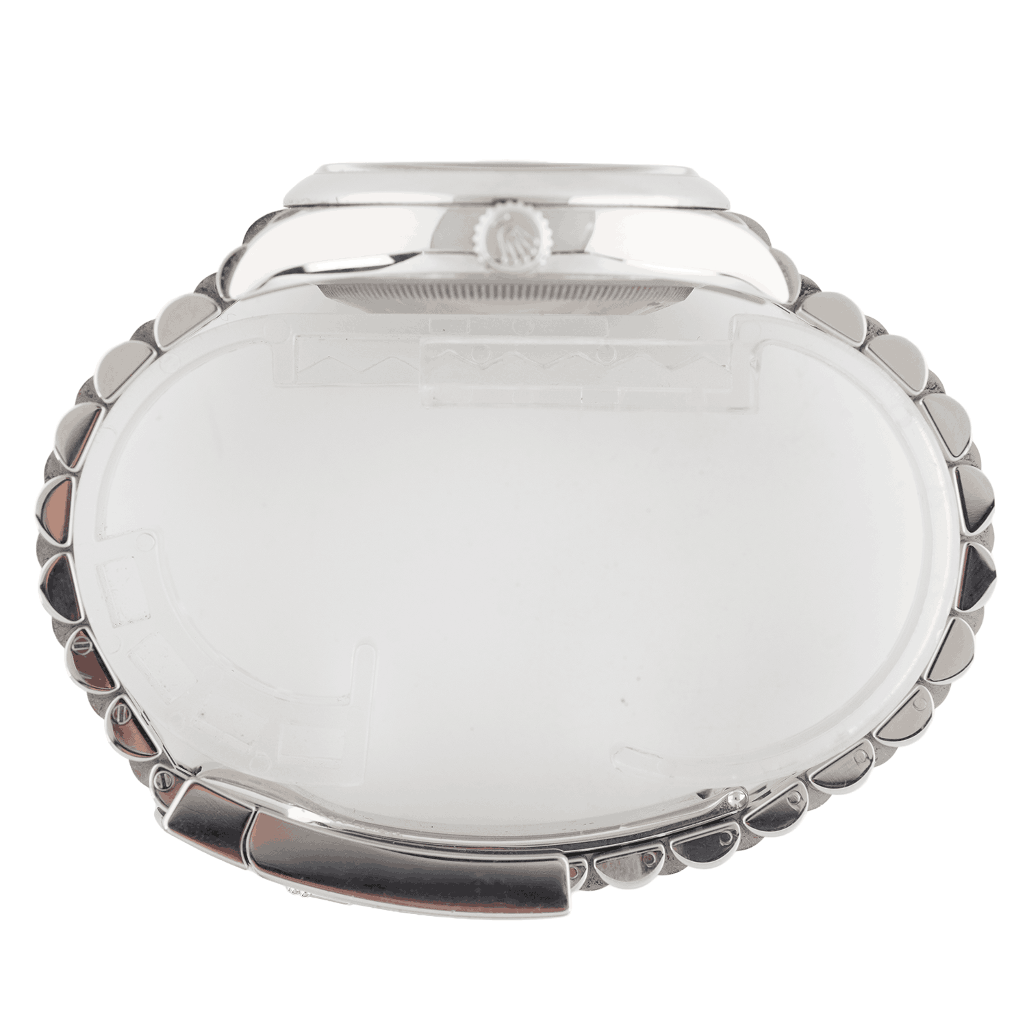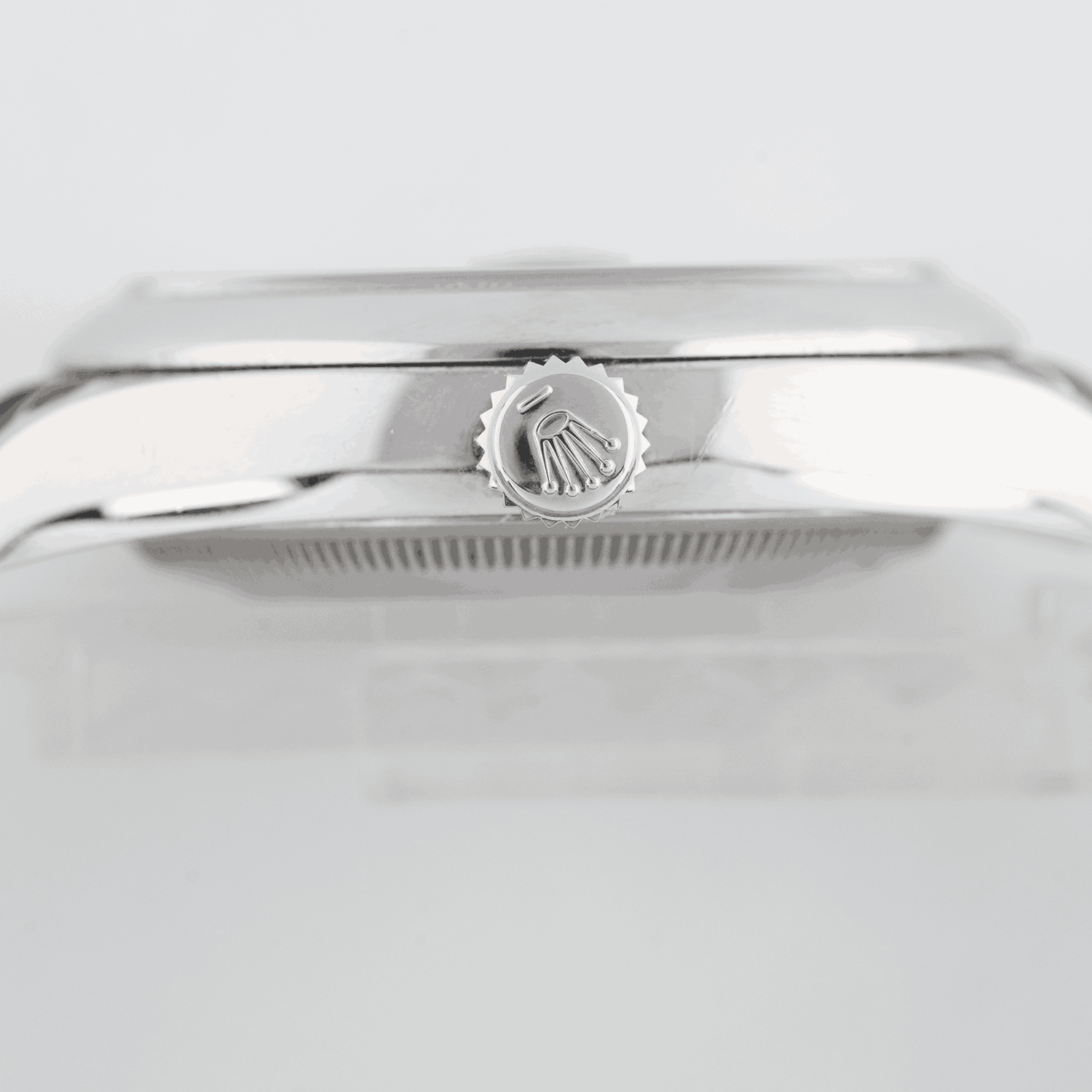 - Leichte Gebrauchsspuren wie feine Kratzer oder kleine Oberflächenkratzer. Gehäuse, Lünette und Armband behalten ihre scharfen Kanten und die ursprüngliche Form. Kann professionell poliert worden sein, ohne die originalen Konturen zu verändern. Mechanisch voll funktionsfähig.