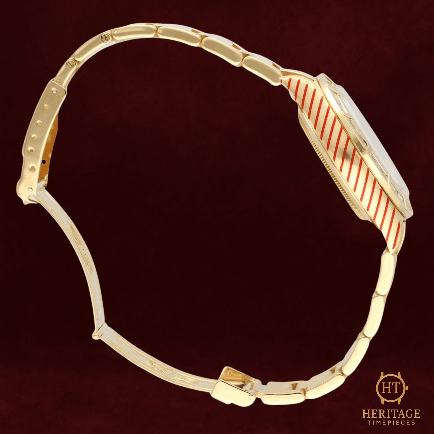 Lünette: Werkseitig besetzte Baguette-Diamantlünette aus 18-karätigem Gelbgold