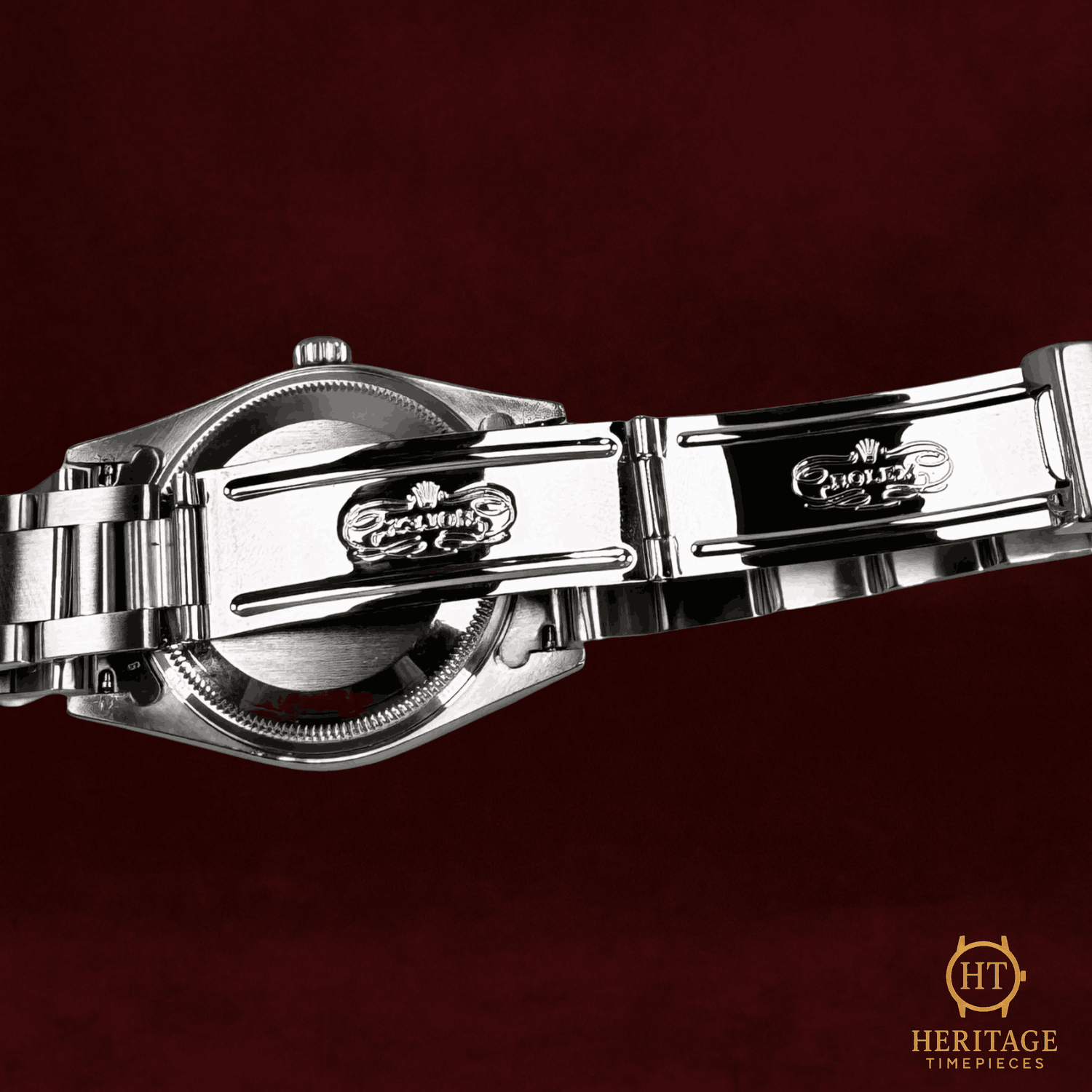 - Sichtbare Gebrauchsspuren wie Kratzer, kleine Dellen oder leichtes Spiel im Armband. Kann professionell poliert worden sein. Mechanisch voll funktionsfähig.