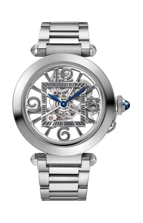 Cartier Pasha De Cartier 41 mm, Automatik, Edelstahl, Skelettierte Zifferblatt, 2 Armbänder WHPA0007