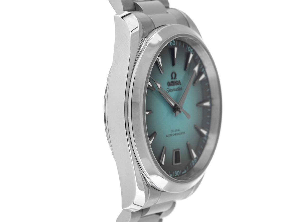 Gehäuse Edelstahl poliert und satiniert, Gehäusedurchmesser ohne Krone 41mm, Gehäusehöhe 13,2mm. Lünette Edelstahl glatt und poliert. Armband Edelstahl poliert und satiniert, verdeckte Doppelsicherheitsfaltschließe Edelstahl mit Hersteller-Logo. Zifferblatt türkis mit aufgesetzten Leuchtindexen und Leuchtzeigern. Uhrwerk Automatik, Master Chronometer mit Zeugnis, Omega Manufakturkaliber 8900 mit 39 Edelsteinen, Co-Axial Hemmung, Freie Unruh-Spiralfeder, 2 Federhäuser, Gangreserve ca. 60 Stunden. Anzeige von Stunde, Minute und Sekunde über Zeiger aus der Mitte mit Sekundenstopp zur sekundengenauen Einstellung der Uhrzeit, Datumsanzeige mit Schnellverstellung bei 6 Uhr. Saphirglas kratzfest, gewölbt und beidseitig entspiegelt. Krone verschraubbar mit Hersteller-Logo. Boden Edelstahl verschraubt und graviert mit Saphirglas Sichtfenster. Gewicht der Uhr inklusive Armband 150g, Länge des Armbandes inklusive Gehäuse 200mm. Wasserdicht bis 15 ATM. Referenznummer: 220.10.41.21.03.006, ID: ST1160102140426H-7200, Artikelnummer: 10000085558. Original Omega Box mit Umkarton und Garantie Papiere von April 2026 sowie Beschreibung, Full Set. Ungetragen. Lieferzeit sofort.