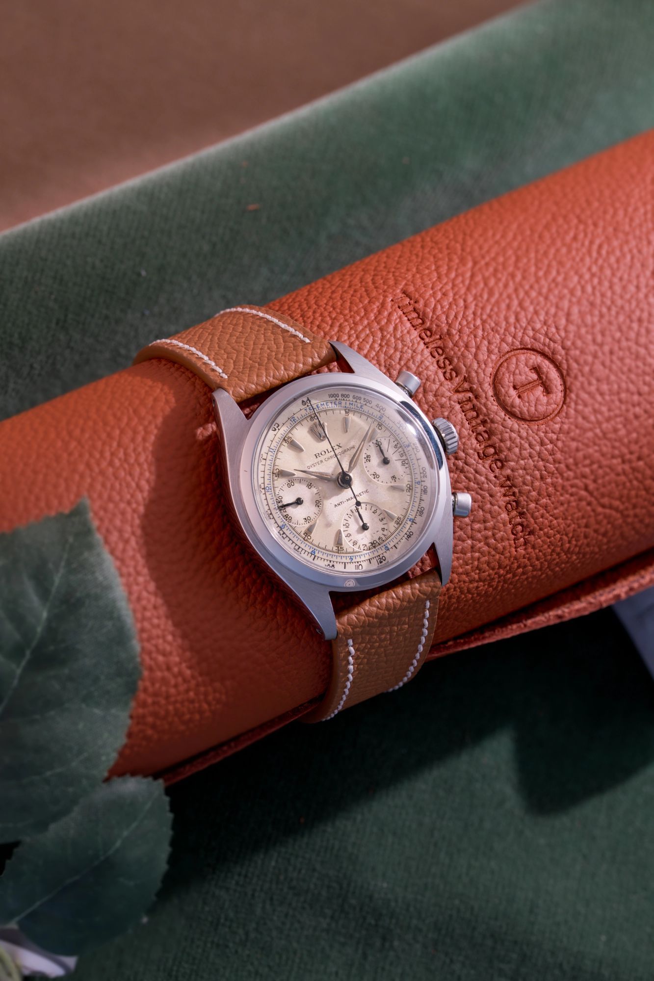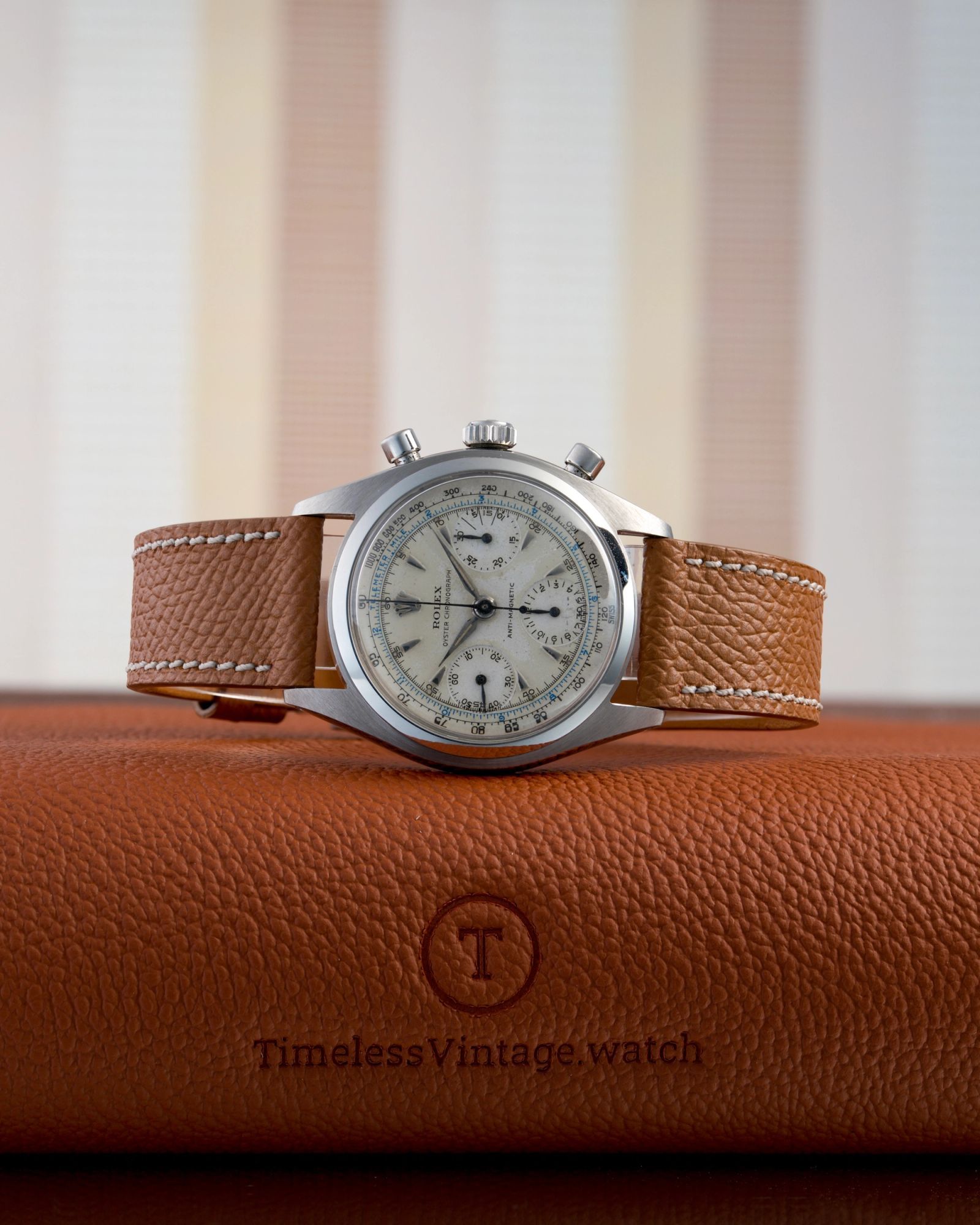 This is a rare and elegant collector’s chronograph, representing Rolex design in its purest form before the Daytona era.