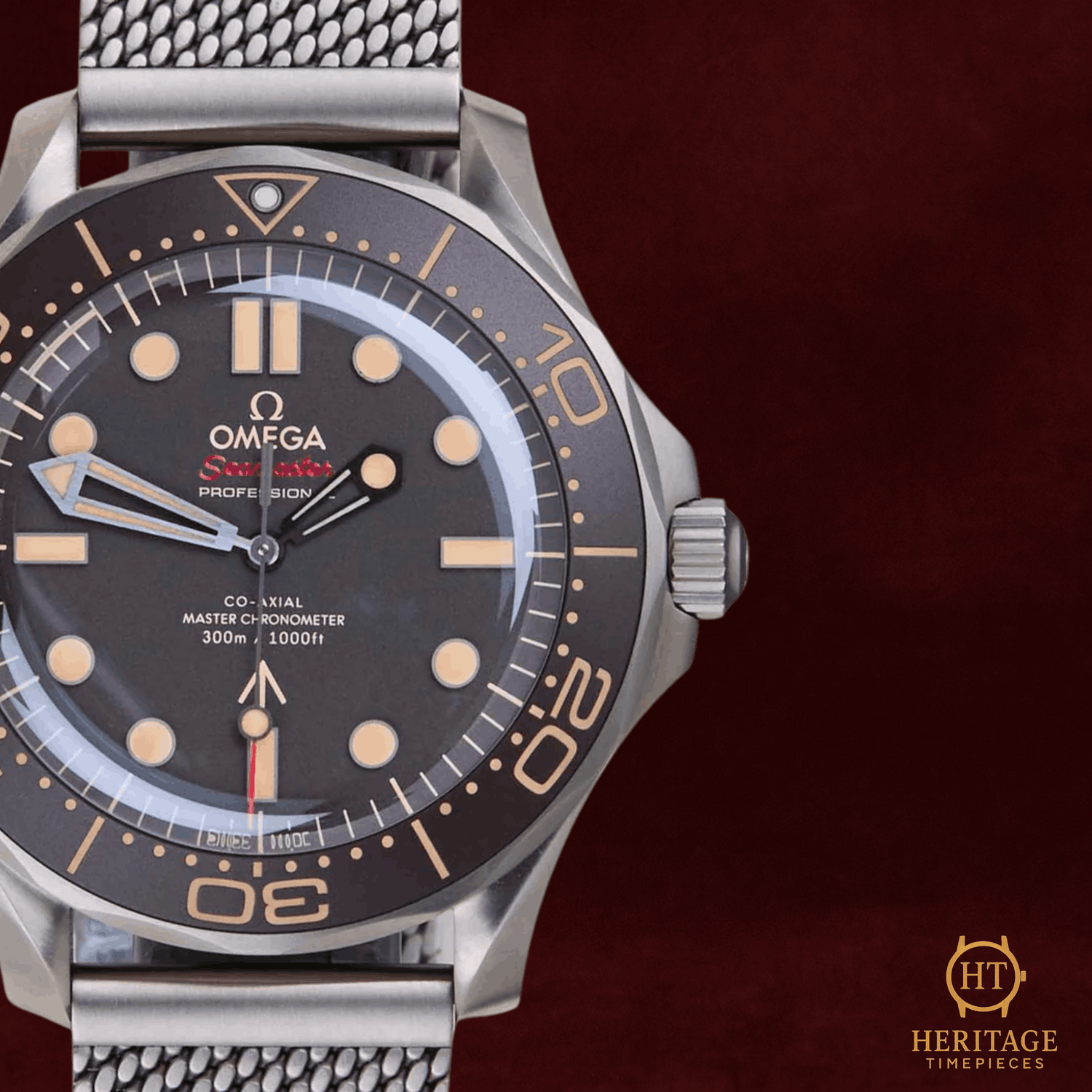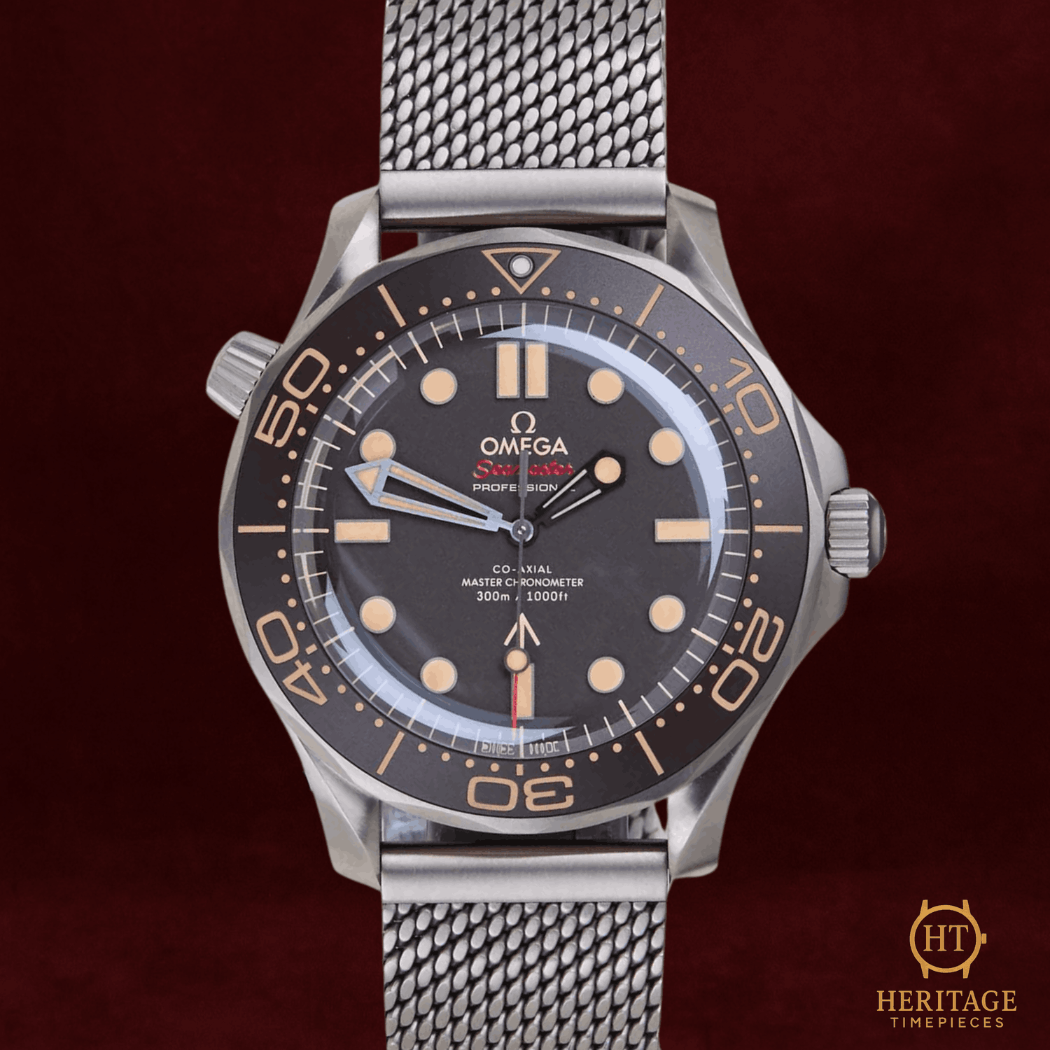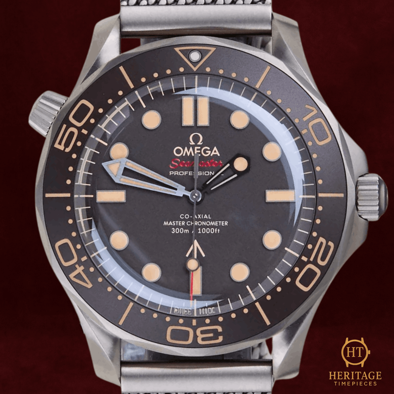 Heritage Narrative The Omega Seamaster Diver 300M “No Time To Die” edition represents a distinctive interpretation of one of Omega’s most iconic dive watches. Created in collaboration with the James Bond franchise, the model reflects a more utilitarian aesthetic inspired by military-issued timepieces. Technical Specifications Reference:210.90.42.20.01.001 Year:2022 Movement:Omega Co-Axial Master Chronometer Caliber 8806 automatic movement Case:42 mm case in Grade 2 titanium Bezel:Brown tropical aluminium bezel with diving scale Crystal:Domed sapphire crystal Dial / Hands:Brown dial with luminous indices and hands Bracelet / Clasp:Titanium bracelet with folding clasp Water resistance:300 m (manufacturer specification) Condition & Inclusions Overall grade:Pre-owned — mint condition Service status:Movement tested and functioning correctly Set:Full set — original Omega box and documentation Warranty:International Omega warranty valid until August 2027 Shipping & Logistics Stored off-site and shipped fully insured within 1–3 business days.Worldwide shipping available; buyer responsible for any import duties or taxes. Shipping & Returns Complimentary insured worldwide shipping and a 14-day return window (watch must be returned in the same condition supplied). Each timepiece is authenticated, time-tested, and professionally prepared prior to dispatch. All shipments include secure packaging, tracking, and full insurance coverage.
