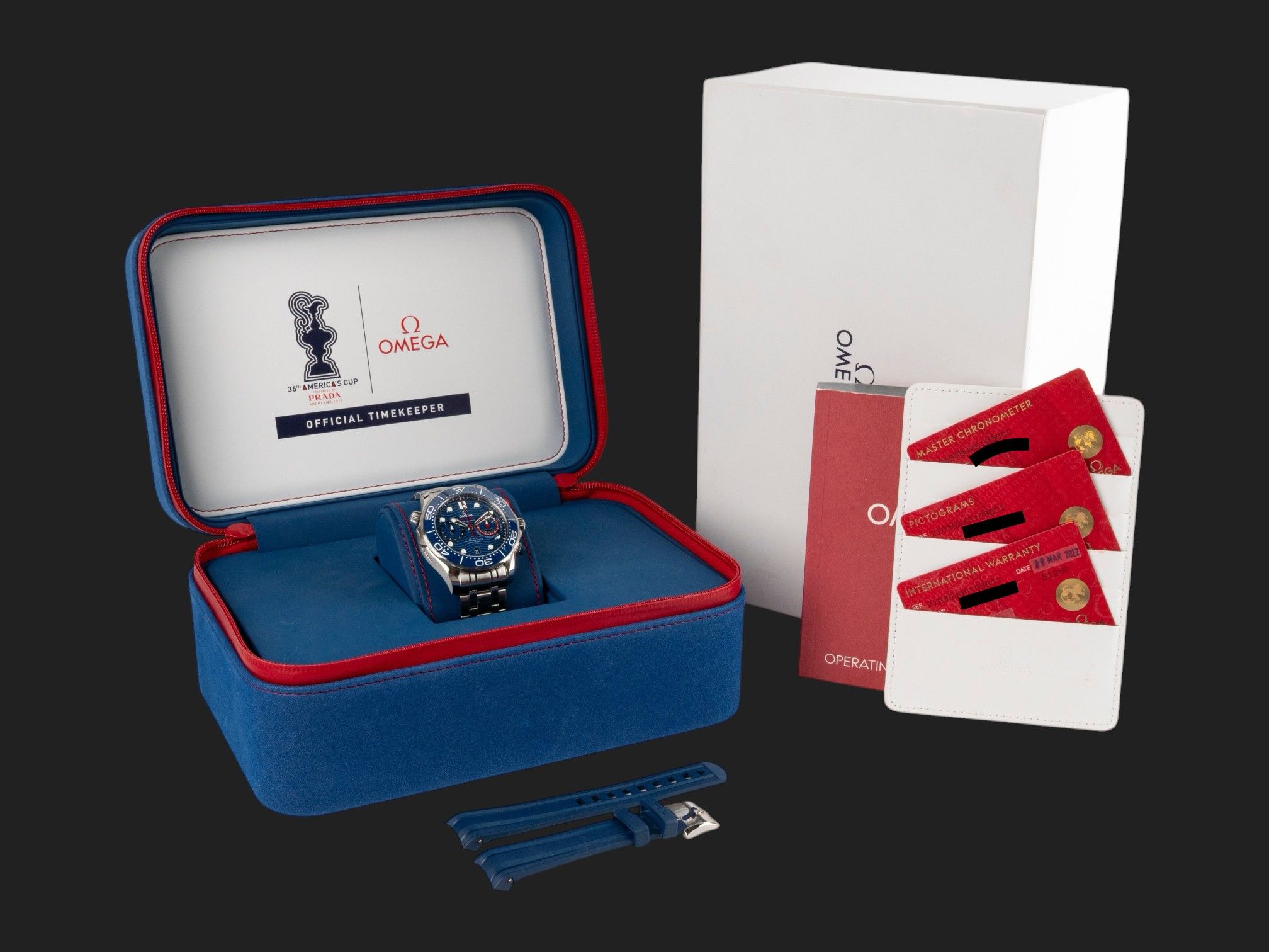 Dial colour is blue.Originally sold by Omega 03/2022.