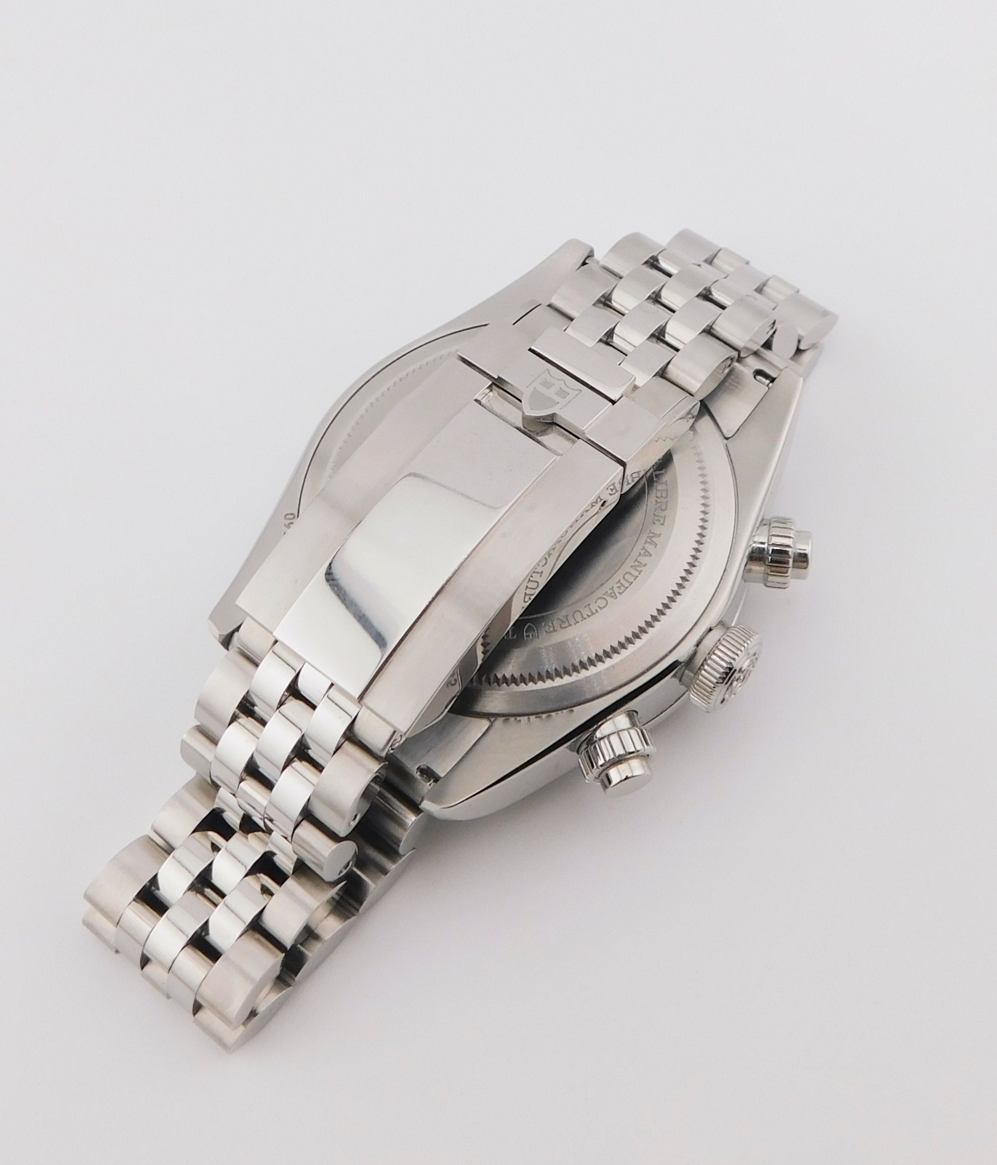 - Sichtbare Gebrauchsspuren wie Kratzer, kleine Dellen oder leichtes Spiel im Armband. Kann professionell poliert worden sein. Mechanisch voll funktionsfähig.