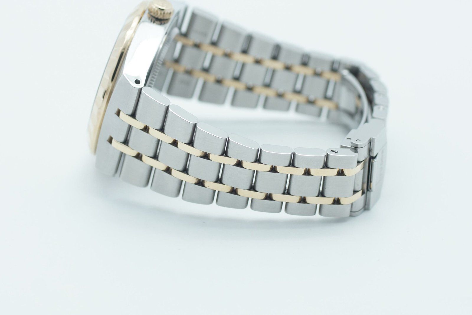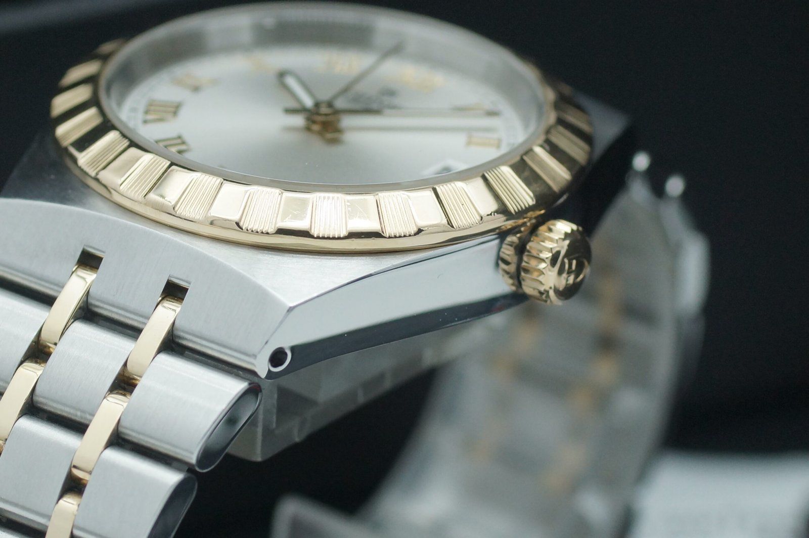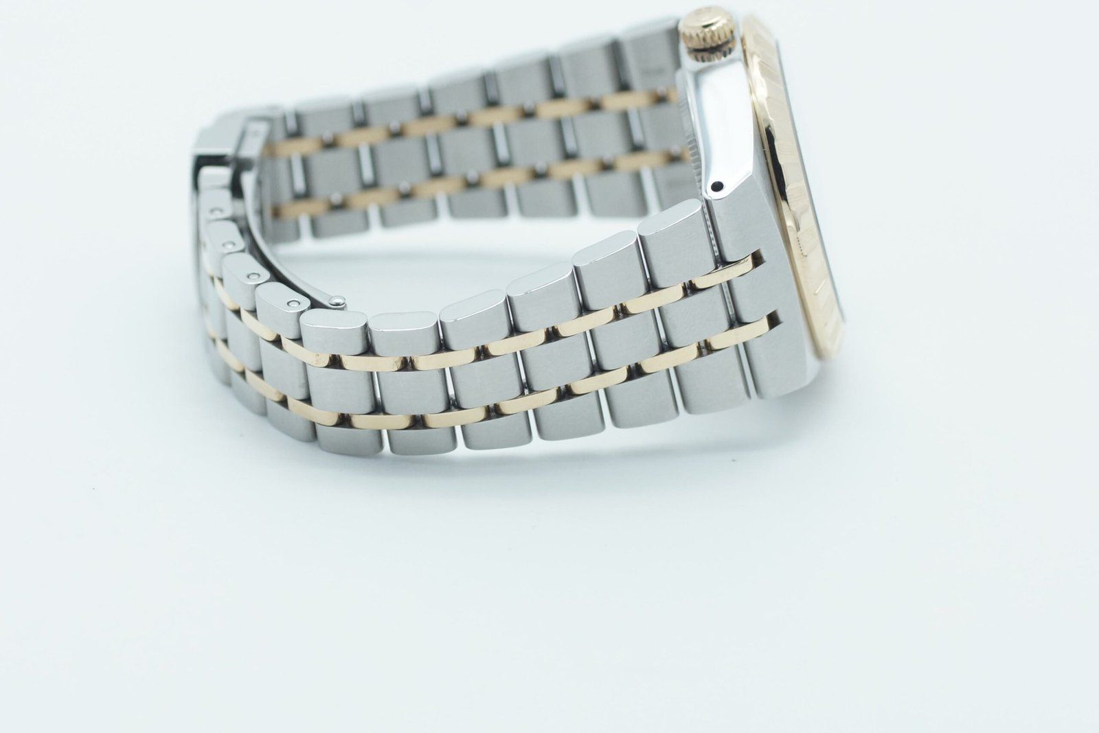 - Sichtbare Gebrauchsspuren wie Kratzer, kleine Dellen oder leichtes Spiel im Armband. Kann professionell poliert worden sein. Mechanisch voll funktionsfähig.