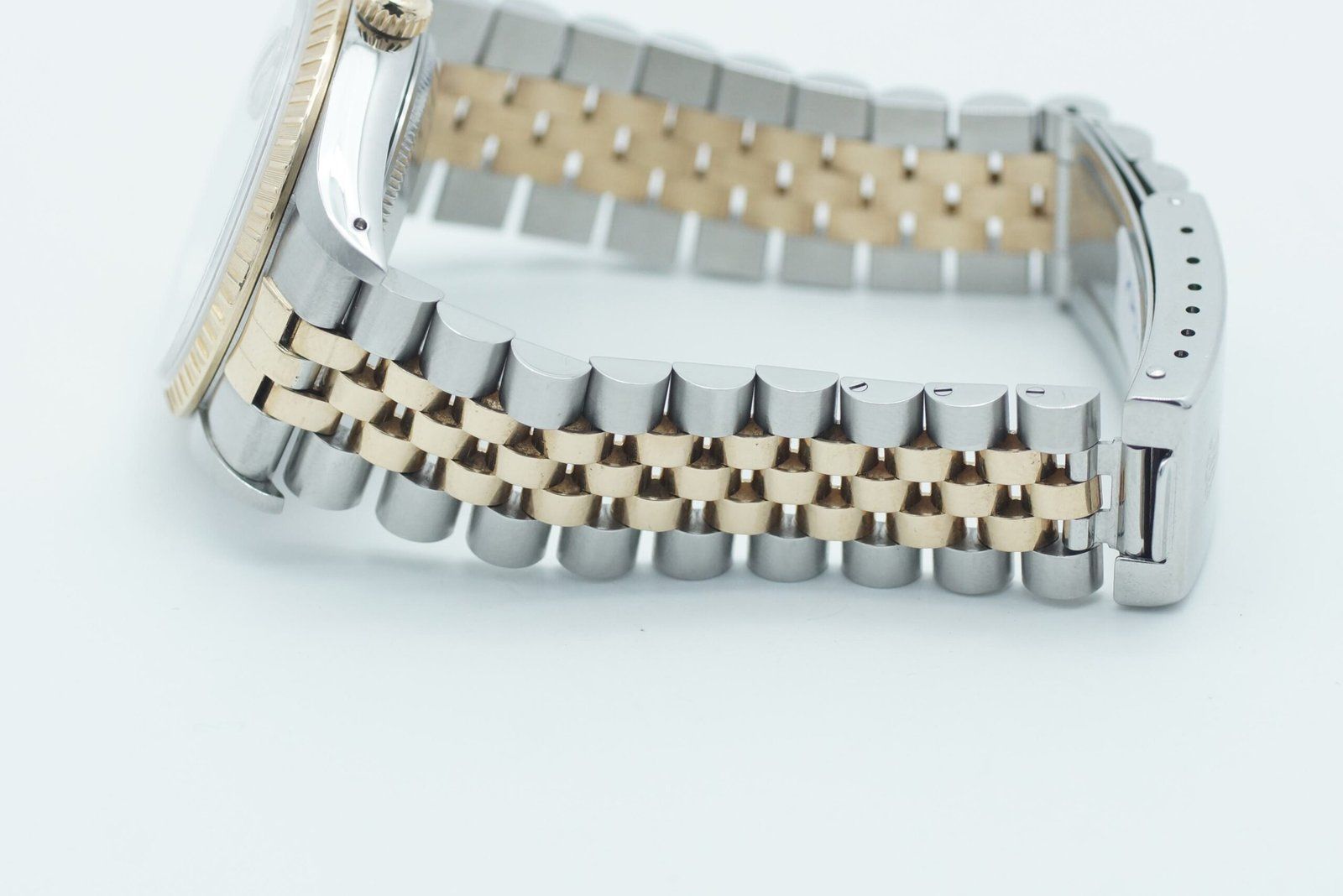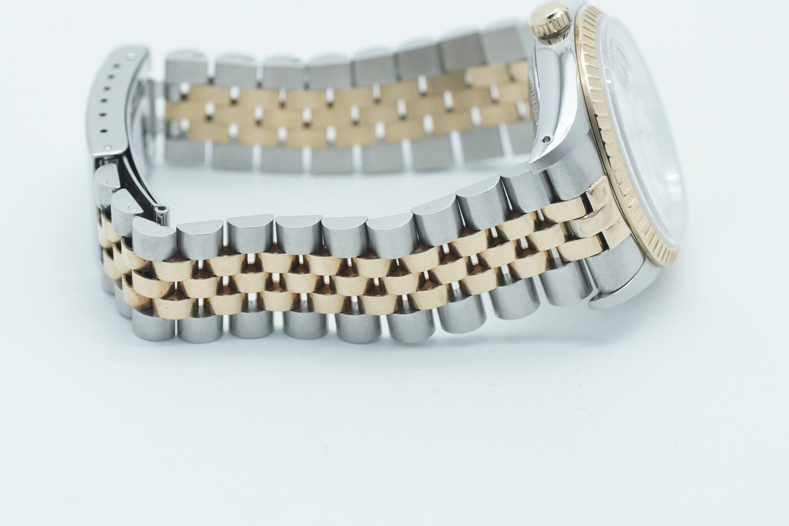 - Leichte Gebrauchsspuren wie feine Kratzer oder kleine Oberflächenkratzer. Gehäuse, Lünette und Armband behalten ihre scharfen Kanten und die ursprüngliche Form. Kann professionell poliert worden sein, ohne die originalen Konturen zu verändern. Mechanisch voll funktionsfähig.