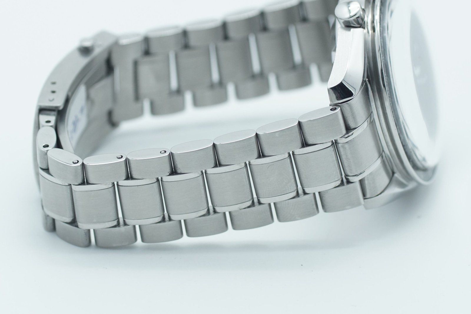 - Sichtbare Gebrauchsspuren wie Kratzer, kleine Dellen oder leichtes Spiel im Armband. Kann professionell poliert worden sein. Mechanisch voll funktionsfähig.