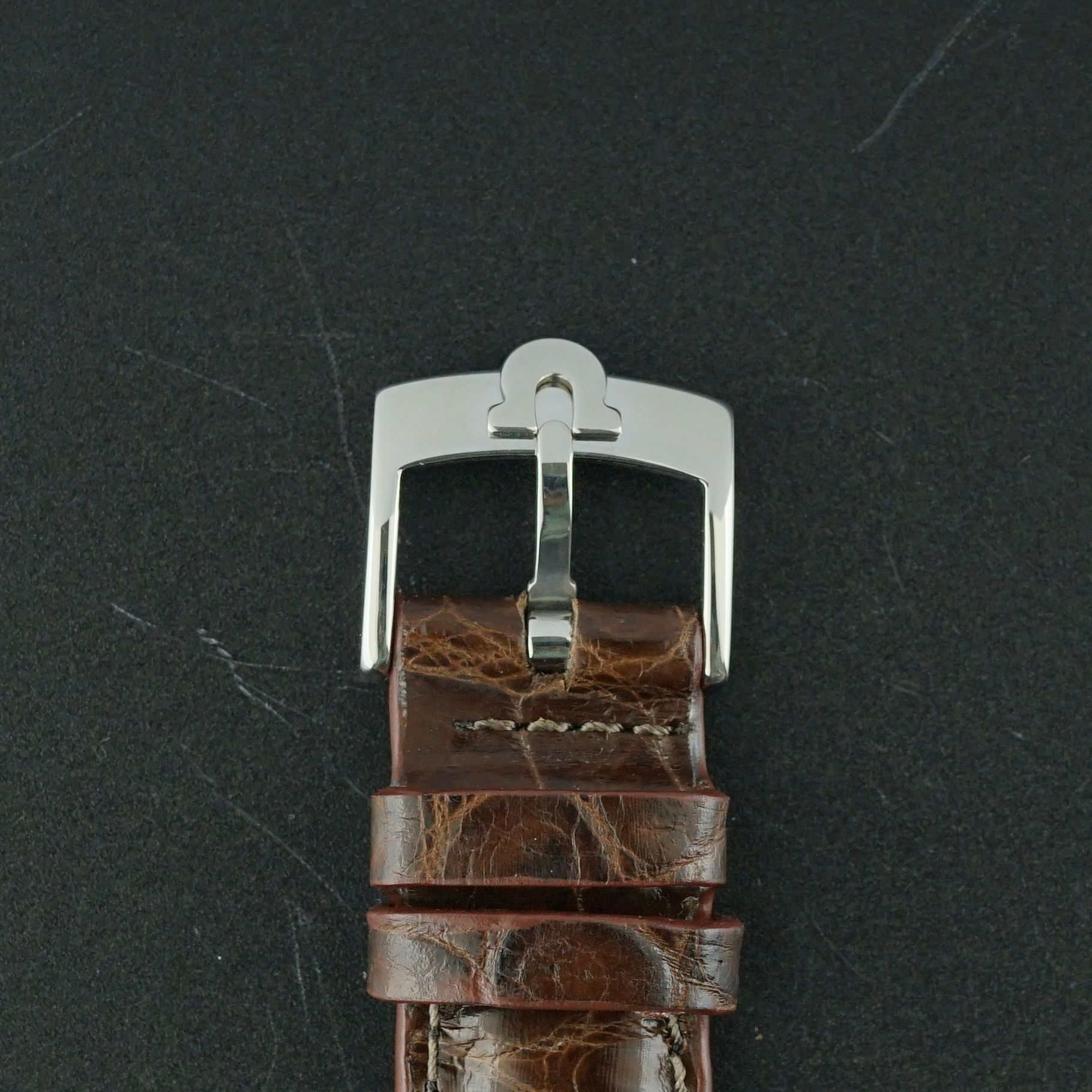 - Sichtbare Gebrauchsspuren wie Kratzer, kleine Dellen oder leichtes Spiel im Armband. Kann professionell poliert worden sein. Mechanisch voll funktionsfähig.