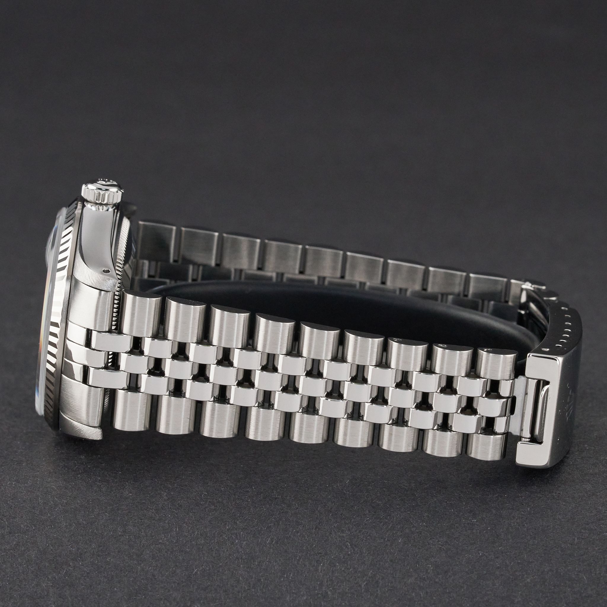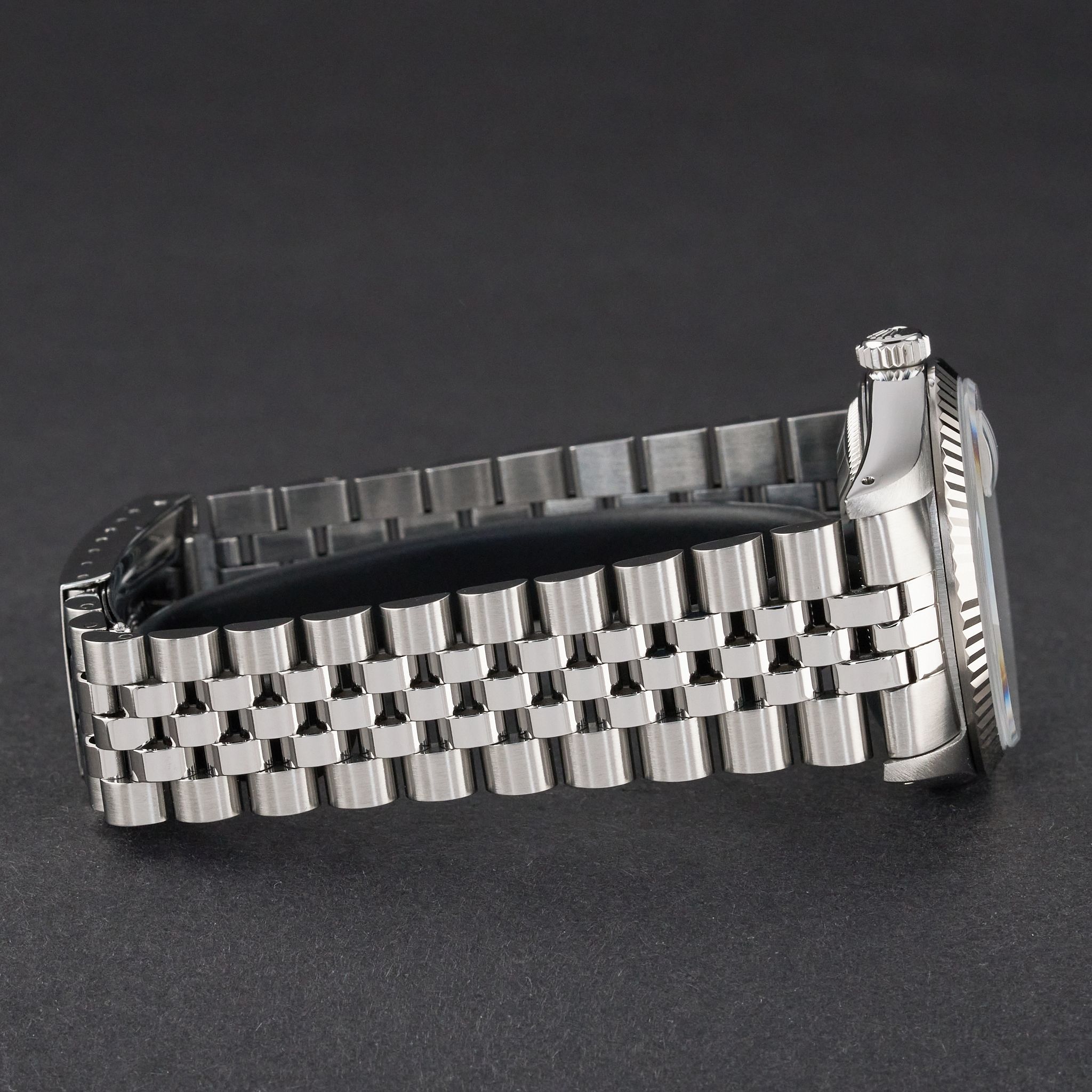 Diese Rolex Datejust 16234 verfügt über eine silberne Tapisserie-Wijzerplaat und ist aus Edelstahl gefertigt, mit einem Produktionsjahr von 1991.