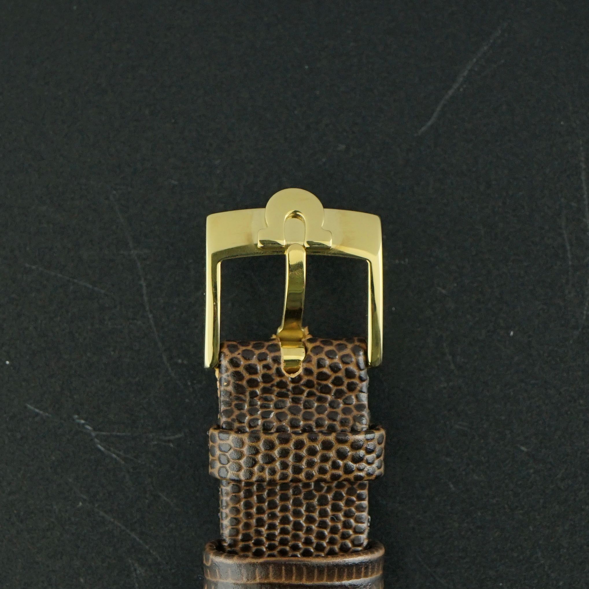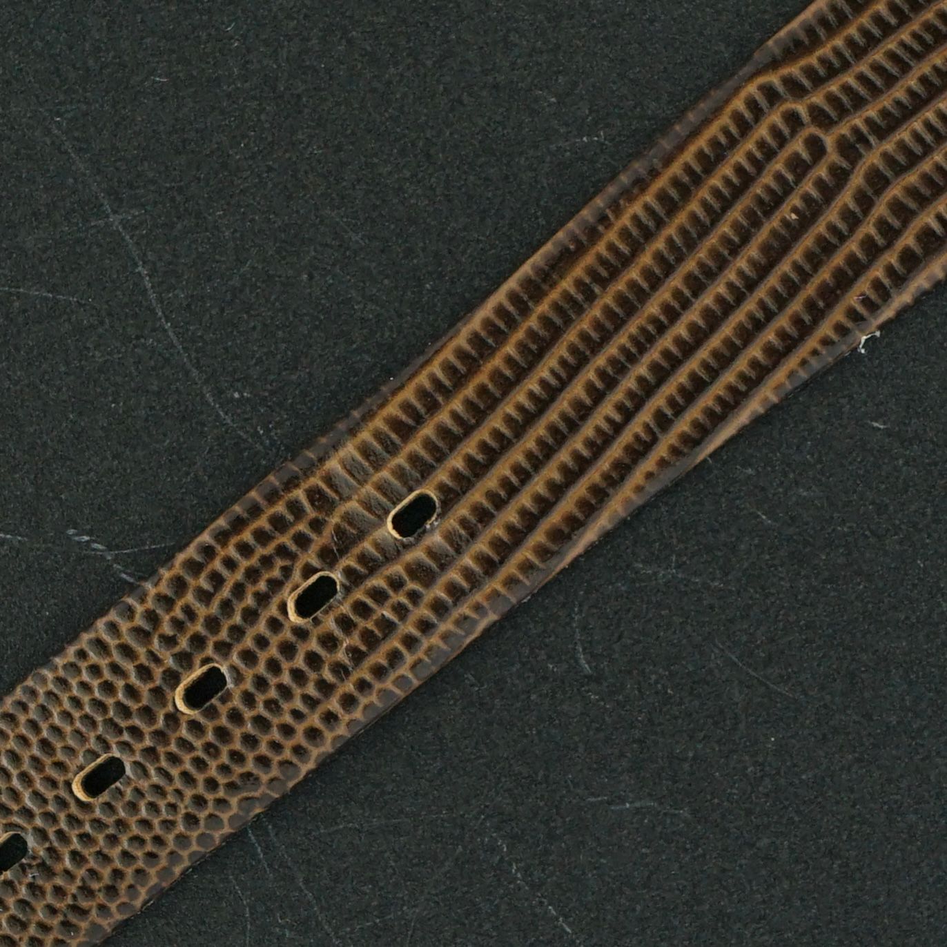 Strap: A brown leather strap with a Lizard motif. (Fits a 12 to 20cm wrist)