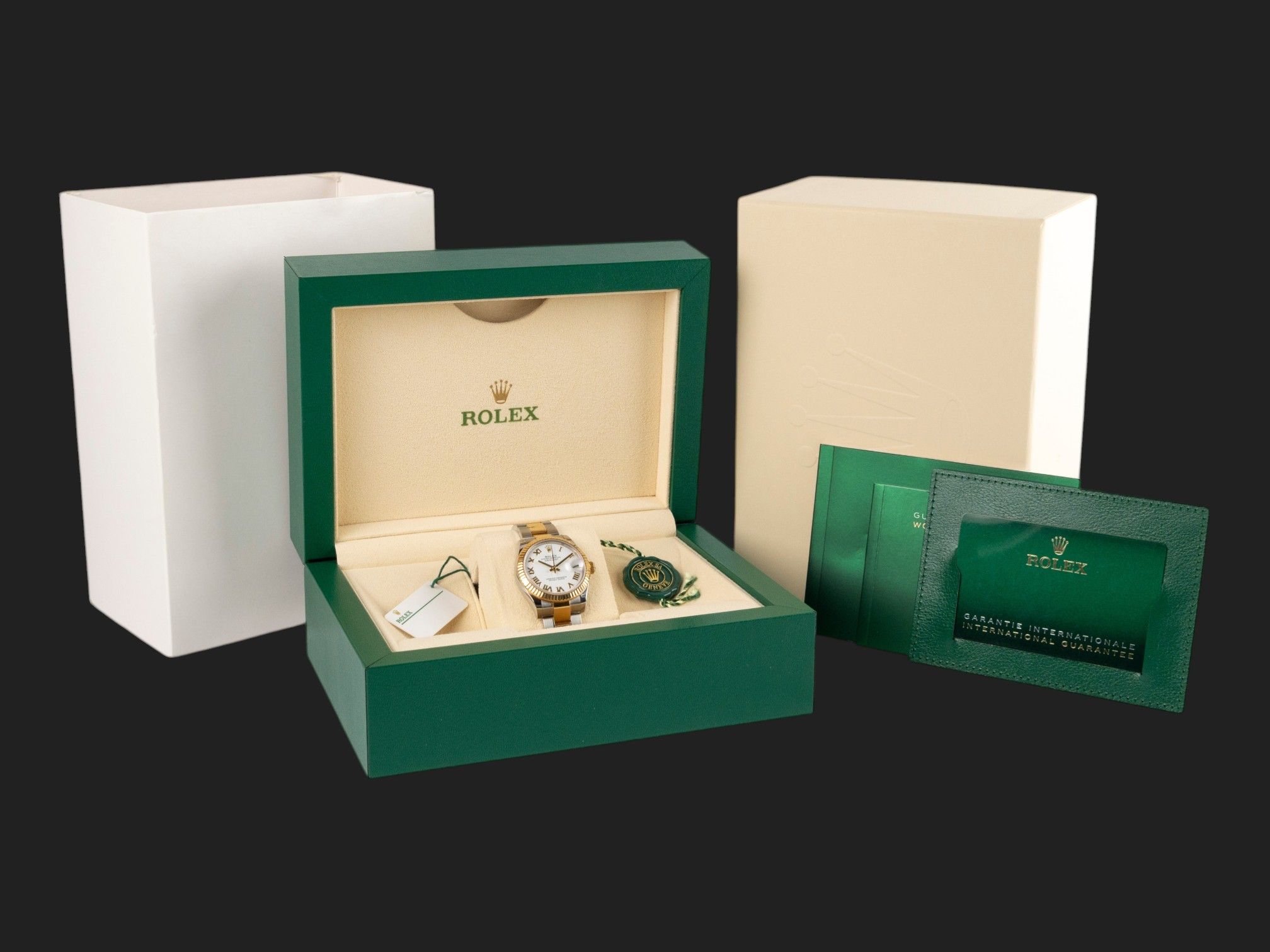 Das Zifferblatt ist weiß und wurde ursprünglich von Rolex 12/2020 verkauft.