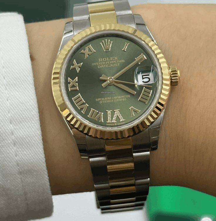Rolex Datejust 31 Rolex Datejust 31 M278273-0015 - Olive green set with diamonds dial, fluted bezel, oyster bracelet