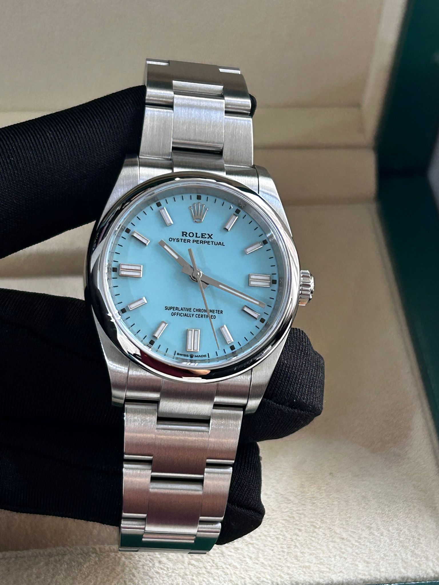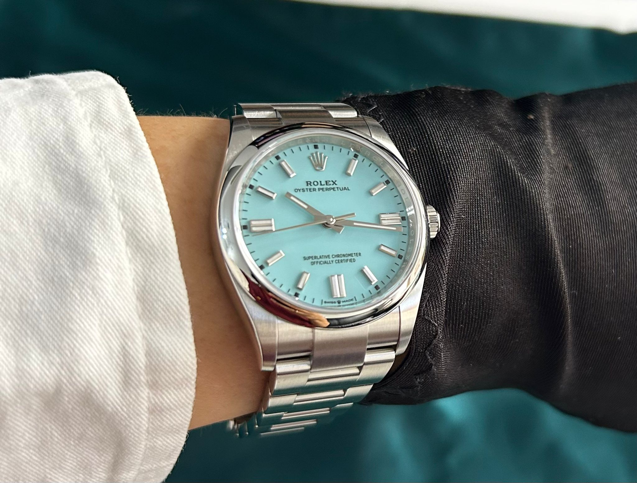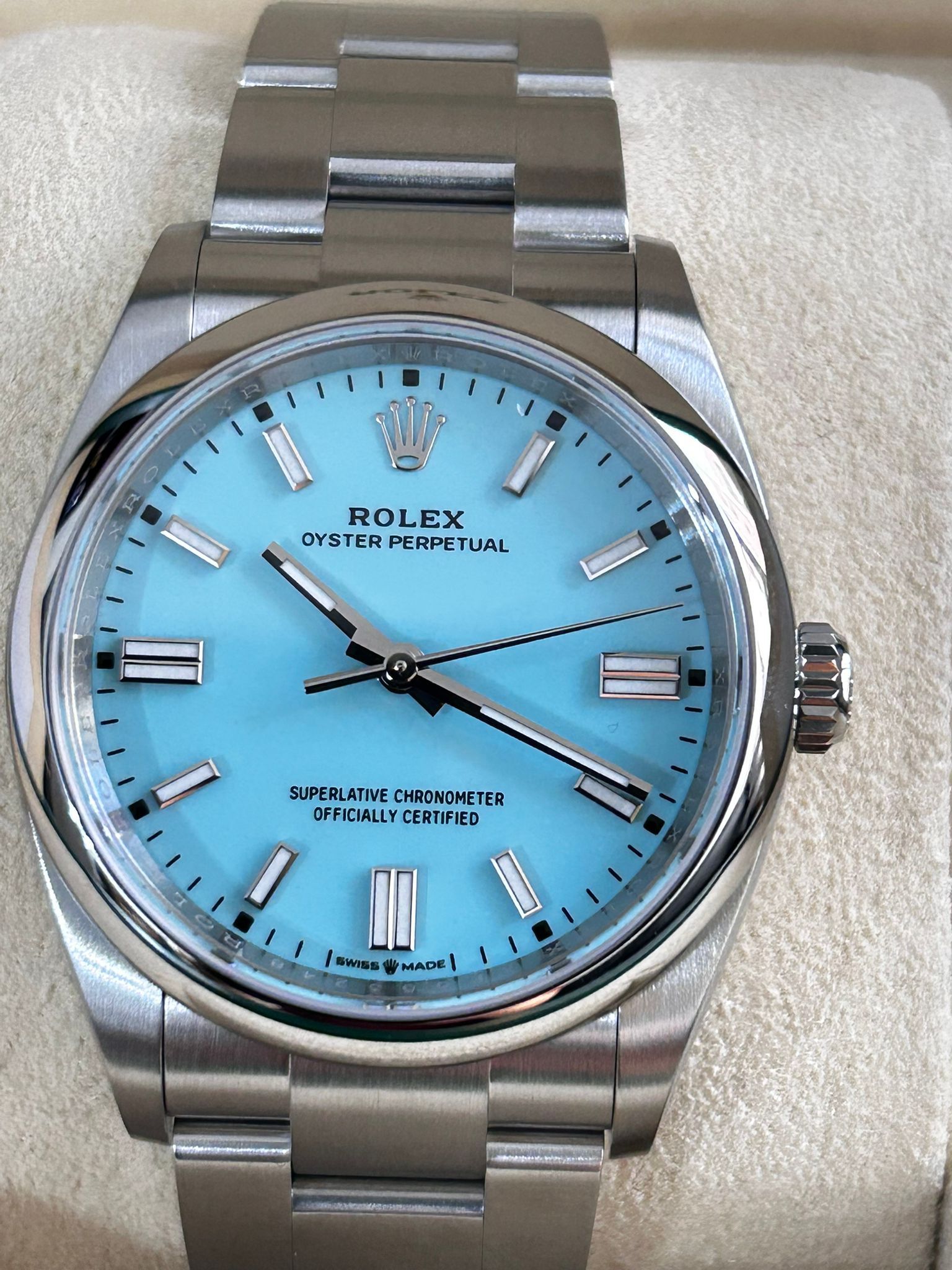 Rolex Oyster Perpetual 36 M126000-0006 - Turquoise blue, Celebration motif dial, domed bezel, oyster bracelet