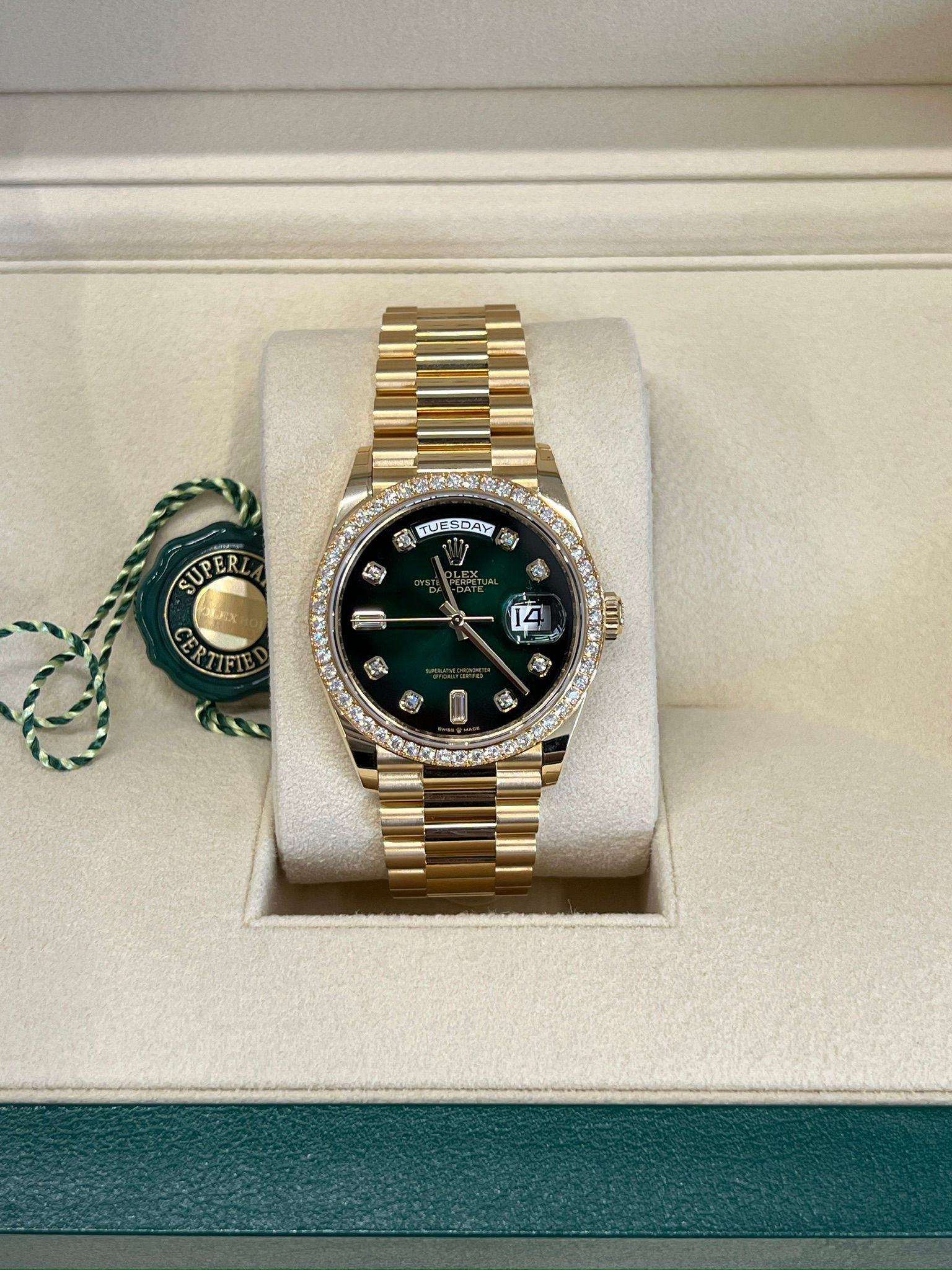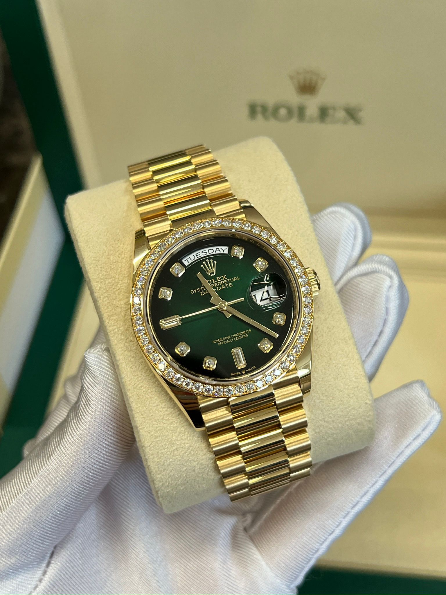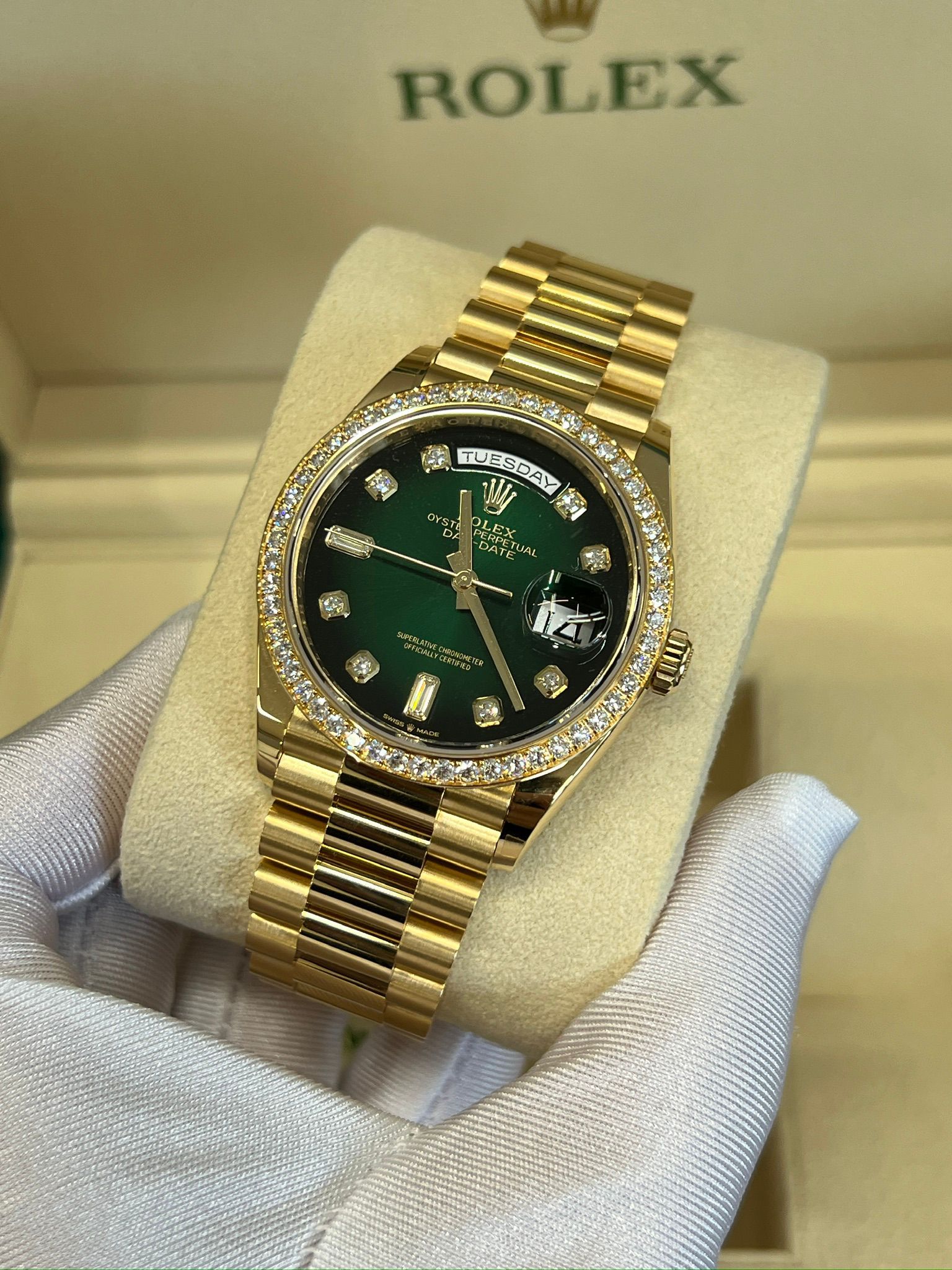 Rolex Day-Date 36 Rolex Day-Date 36 M128348RBR-0035 - Green ombre set with diamonds dial, diamond bezel, president bracelet