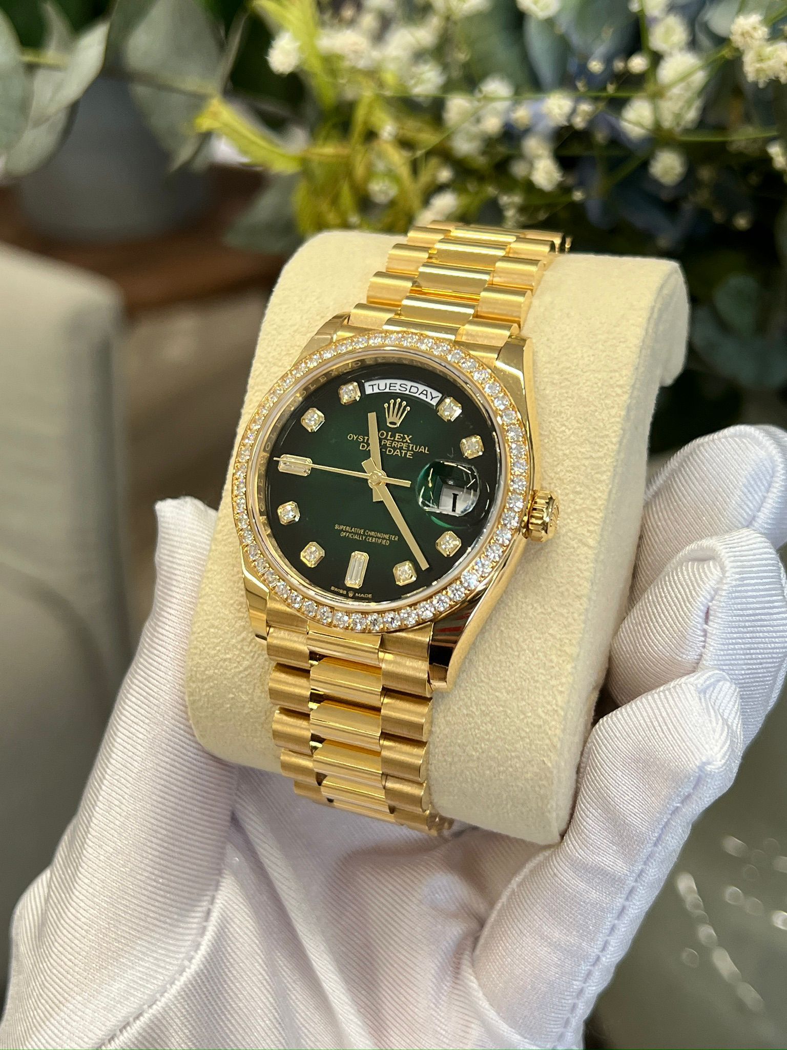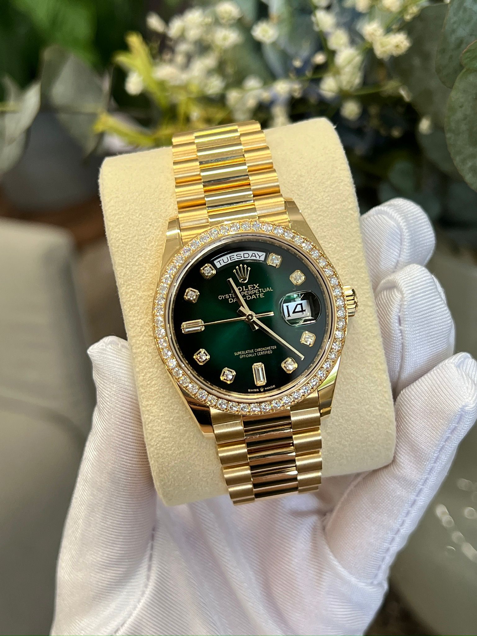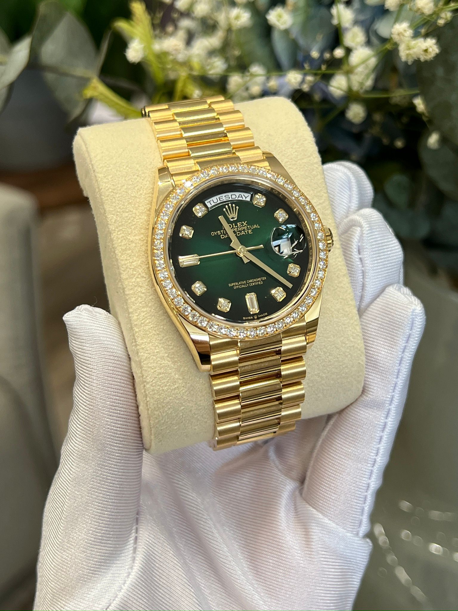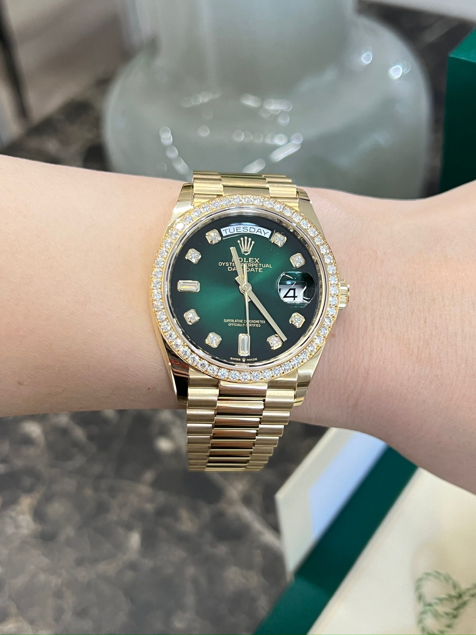 Rolex Day-Date 36 Rolex Day-Date 36 M128348RBR-0035 - Green ombre set with diamonds dial, diamond bezel, president bracelet